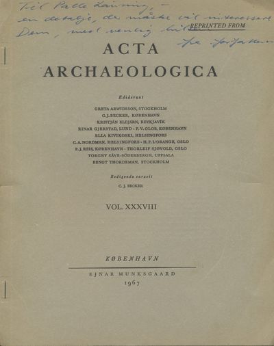 Ejnar Munksgaard, København, 1967. 27 sider. Hæftet. Pænt eksemplar. Reprinted from Acta Archaeologica vol. XXXVIII. Illustreret. Med dedikation på forsiden fra forfatteren til Palle Lauring.. Engelsk