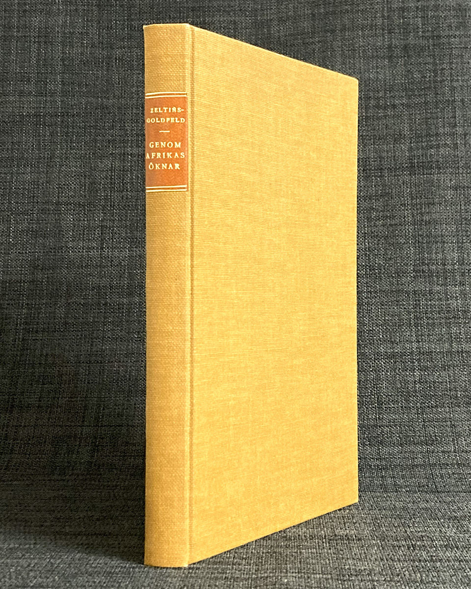 Stockholm, Hugo Gebers förlag (tr. Helsingfors), 1925. 8:o. 240 sid. + utvikbar karta. Illustrerad i texten med fotografier. Trevligt samtida gult klotband, ryggen med brun titeletikett, marmorerade snitt, främre dek. omslaget i färg medbundet. Fint skick. Innehåll: "Från Medelhavets kust till Hoggarbergen", "Hoggarbergen - tuaregernas 'Bled-el-chuf', 'Fasornas land'", "På otrampade stigar. Genom Tanesruft, 'Törstens land', till Sudan". - - - "Through the Deserts of Africa", in Swedish, publisher's yellow cloth, fine. - - - [Contents (NB in Swedish): "From the Mediterranean coast to the Hoggar Mountains", "The Hoggar Mountains - the Tuaregs' 'Bled-el-chuf', 'Land of Horrors'", "On untrodden paths. Through Tanesruft, 'Land of Thirst', to Sudan".]