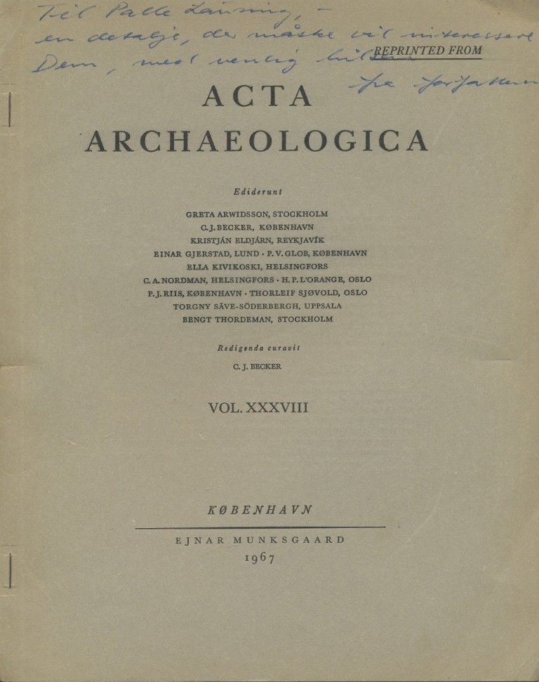Ejnar Munksgaard, København, 1967. 27 sider. Hæftet. Pænt eksemplar. Reprinted from Acta Archaeologica vol. XXXVIII. Illustreret. Med dedikation på forsiden fra forfatteren til Palle Lauring.. Engelsk