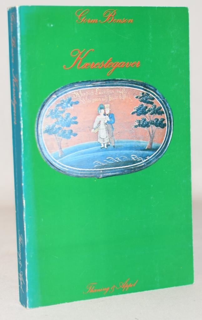 Thaning & Appel, 1979. 191 sider. Hæftet. Pænt eksemplar. Illustreret i sort/hvid. De fleste mennesker ser for sig et mangletræ, en banketærskel eller måske et lille fikst udskåret skrin, når de hører ordet »kærestegave«. Disse ting udgør dog kun et såre beskedent udsnit af kærestegave-mulighederne, for sandheden er, at utroligt mange genstande har kunnet tjene dette formål. Man havde sine favoritter, traditionsting, som har optrådt over stort set hele Europa, og som man ustandselig løber på. En del af dem er omtalt i denne bog, men derudover er medtaget mere specielle emner, for ligesom at belyse områdets alsidighed.. Dansk