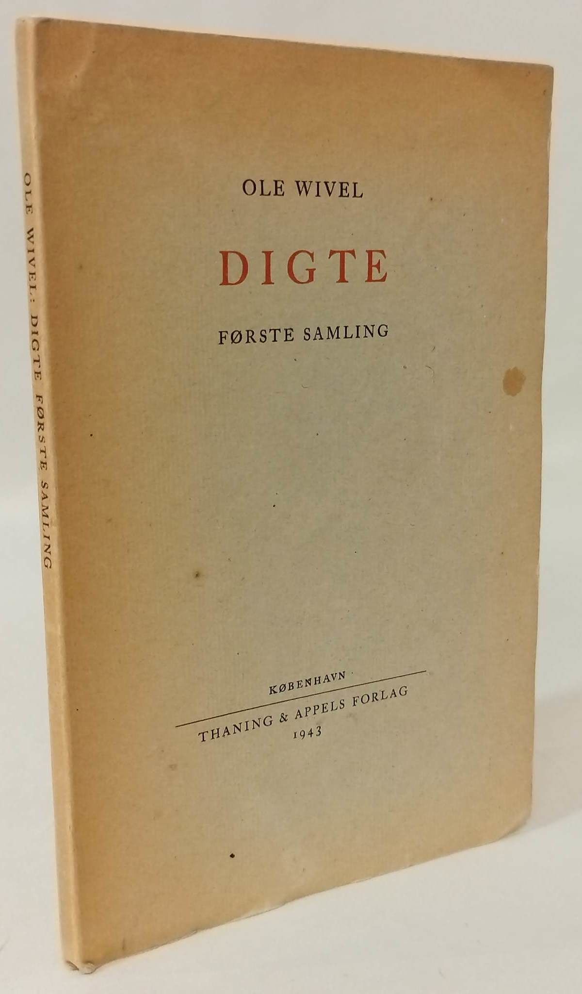 Thanning & Appel, 1943. 1. udgave. 1. oplag. 69 sider. Hæftet Pænt eksemplar, dog med lette ydre spor. Plet på omslag Digte. Dansk