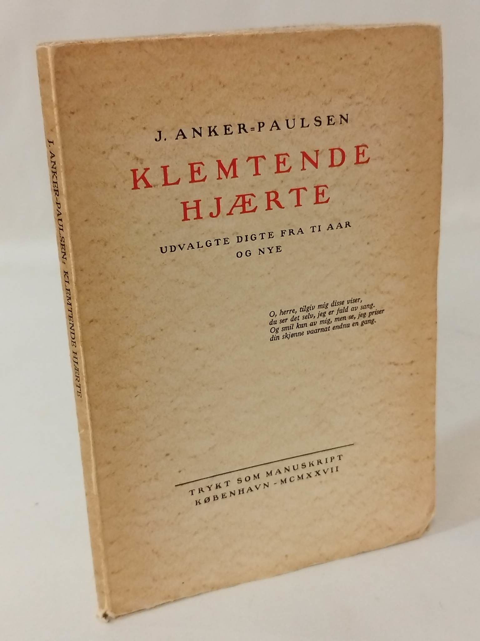 Woels Forlag (Cai M. Woel), 1927. 94 sider. Hæftet. Pænt eksemplar. Digte.