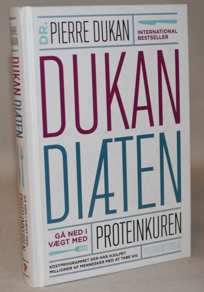 Politiken, 2012. 336 sider. Orig. illustreret kartonbind. Velholdt eksmplar. Den franske læge Pierre Dukan præsenterer her sin diæt baseret på højt proteinindtag. Derudover opskrifter og forslag til motion og øvelser. Dansk