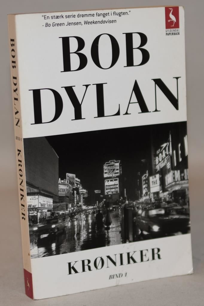 Gyldendal Paperback, 2005. 281 sider. Paperback. Pænt eksemplar, dog med lette ydre spor. Om hans ungdom i minebyen Hibbing, Minnesota, om den første tid som udøvende musiker på folkemusikscenen i Greenwich Village, New York i begyndelsen af 1960'erne og om tilblivelsen af nogle af de store plader fra 1970'erne og 1980'erne. Dansk