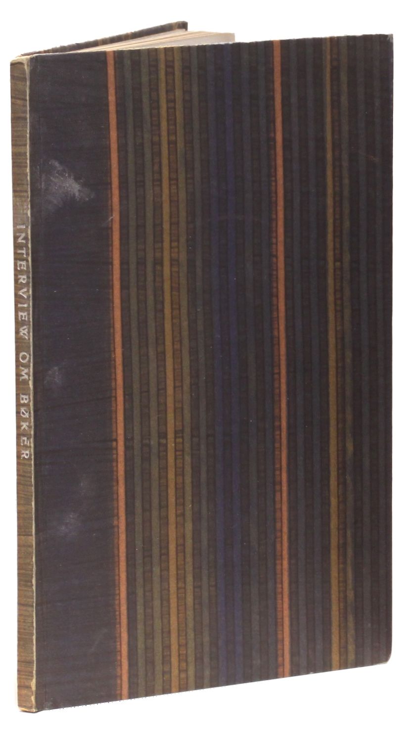 Den lille boken er i realiteten et intervju med bokbinder H. M. Refsum, ryggtittelen har oppfattet det: “Interview om bøker”. Den fine trykksaken er illustrert med tre innklebede originale papirprøver fra Refsum.