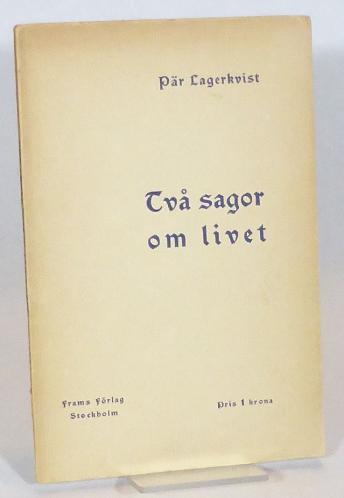 Stockholm; Frams förlag, 1913. Originalupplaga. 21x14 cm. 71, (1) s. Häftad med tryckt omslag. Ryggen lätt nött. Minimal förlust vid rygghuvudet samt med en centimeterlång reva i nedre bakre fals. Omslaget med mörknade marginaler och mindre hörnveck. Genomgående litet hörnveck upptill. Välbevarat exemplar av Lagerkvists ovanliga andra bok, som i likhet med debuten från föregående år inte fick några recensioner att tala om förrän David Sprengel, efter att Ordkonst och bildkonst publicerats senare under 1913, skrev hyllande om samtliga tre böcker.