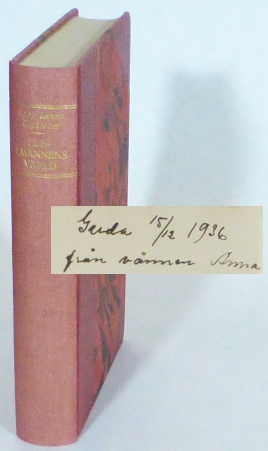 Stockholm; Bonniers, 1936. Originalupplaga. 19,5x13 cm. 374, (1, 1 blank) s. Osignerat rött halvklotband med förgylld ryggtitel och marmorerade pärmpapper. Främre omslaget medbundet. Ryggen något blekt. Ett par svaga fläckar på främre omslag. Fint ex. Romanen avslutar författarens utvecklingsroman i tre delar om Elsa Holm. Dedikation: ""Gerda 15/12 1936 från vännen Anna"". Mottagare var troligen Elgströms nära vän journalisten Gerda Marcus (1880-1952), verksam liksom Elgström inom freds- och kvinnorörelsen; de båda var också initiativtagare till den svenska grenen av Rädda Barnen.