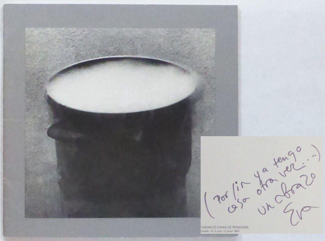 Barcelona; Fundació Caixa de Pensions, 1987. 21x21 cm. (24) pp. Illustrated. Original printed wrappers, stapled. There are a few minor creases in front wrapper's inner margin. A fine copy. Inscribed by Lootz, either to Anders Tornberg or to his wife Inger: ""(Por sin ya tengo casa otra vez…) / un abrazo / Eva"". From the library of Anders Tornberg Gallery in Lund, Sweden, and with a stamp confirming this on the last blank page.