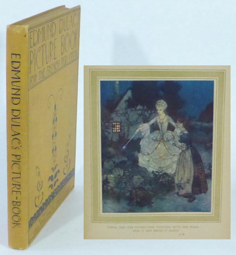 London & New York & Toronto; Hodder and Stoughton, [1915]. 28x22 cm. (7, 1 blank), 134, (2) pp. + 19 mounted colour plates + photographical portrait of Dulac. Publisher's buff cloth printed in black, designed by Dulac. No dustjacket. Label of a Swedish bookshop on front inner board, an early owner's signature and a bookplate (Monica Rogard-Åqvist) on front free endpaper. Spine ends and corners are slightly bumped. There are a few small specks on spine and front board, and a light stain on the fore-edge. Pp. 40 has a small stain in outer margin, contents are otherwise fine. Dulac was commissioned to compile a gift book to raise money for the French Red Cross in 1915. Perhaps due to a shortage of time, he chose to re-publish several illustrations in this volume. The plates ""Asenath"", ""The Bird Feng"", and ""Cerberus"" were first published in this book. The first printing was in November of 1915. This copy belongs to a later printing of December, 1915. Hughey 39d.