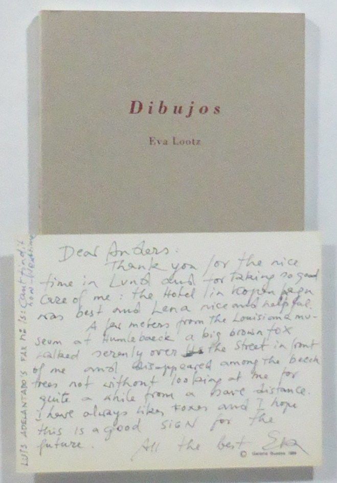 Burgos; Ediciones Aldecoa, 1996. 20,5x13,5 cm. 85, (2, 3 blanks) pp. Richly illustrated. Original printed wrappers. There is a light stain on spine, and minor soiling in lower margin on the title. A fine copy of this publication, depicting 40 drawings. Issued in 1000 copies. With a laid-in postcard in English from the artist to gallery owner Anders Tornberg, wihtout date but probably sent together with the book. She thanks him for taking good care of her while visiting Lund in Sweden. From the library of Anders Tornberg Gallery in Lund, Sweden, and with a stamp confirming this on the last blank page.
