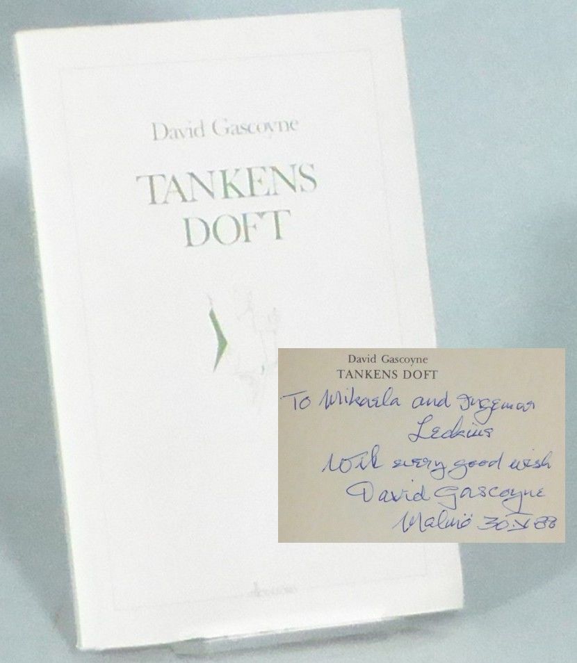 Lund; Ellerströms, 1988. (Enhörningsserien). 17,5x11,5 cm. 79, (1) pp. Original printed wrappers. Spine is a little faded. The oversized wrappers are slightly creased in lower margins. A fine copy. The first volume of poetry by Gascoyne in Swedish translation. Inscribed by the author to Swedish authors Ingemar and Mikaela Leckius: ""To Ingemar and Mikaela Leckius / Lots[?] every good wish / David Gascoyne / Malmö 30.V.88""
