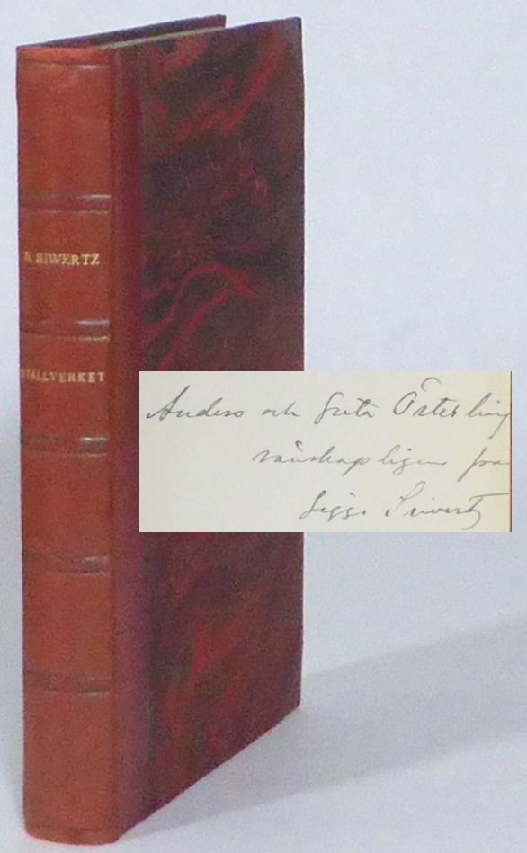 Stockholm; Bonniers, 1921. Originalupplaga. 19x13 cm. 265, (1, 2 blanka) s. Osignerat rött halvfranskt band med förgylld ryggtitel, marmorerade pärmpapper och stänkmålade snitt. Främre omslag medbundet. Ryggen något nött. Fint ex. Novellsamling som förutom titelnovellen innehåller ""Döden i Toledo"", ""Mannen i snögropen"", ""Befrielse"", ""I fiendeland"" och ""Djami och vattenandarna"". Dedikation: ""Anders och Greta Österling / vänskapligen från / Sigge Siwertz"". Anders Österling och Sigfrid Siwertz hade 38 gemensamma år i Svenska Akademien.