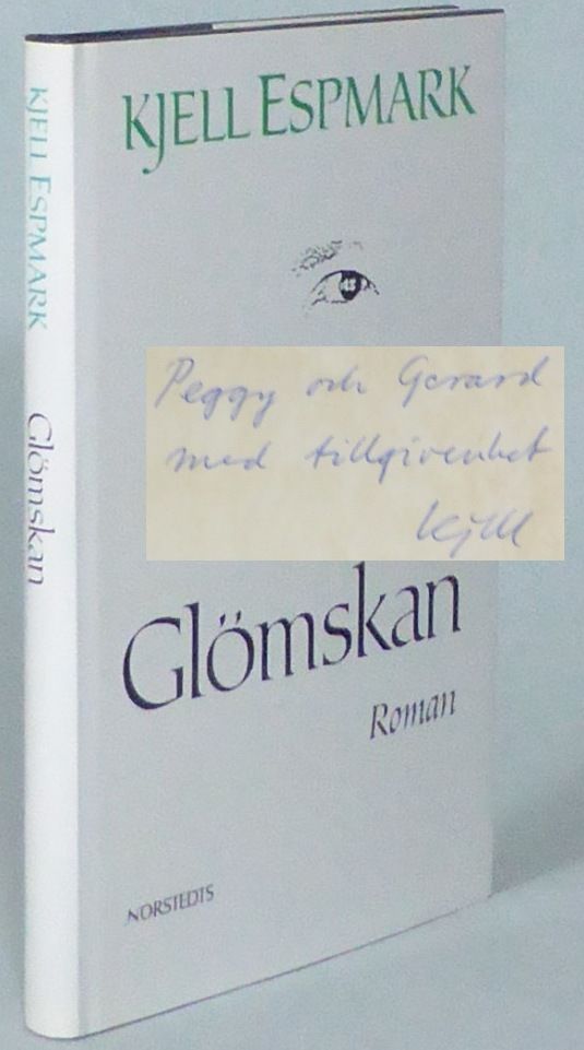 Stockholm; Norstedts, 1987. Originalupplaga. 21,5x14 cm. 151, (1) s. Förlagets pappband med tryckt skyddsomslag. Fint ex. Första romanen av Espmark som bemärkt sig som poet och litteraturvetare. Boken inleder sviten om sju romaner som går under namnet Glömskans tid. Dedikation till förläggarna Gerard och Peggy Bonnier: ""Peggy och Gerard med tillgivenhet / Kjell"".