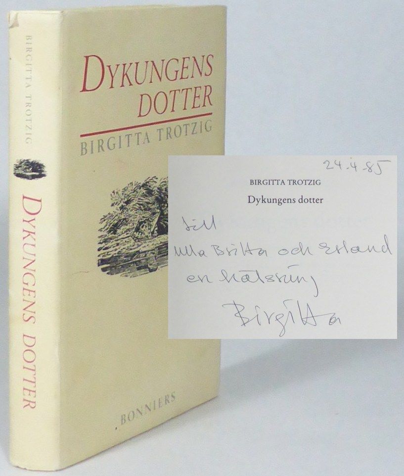 Stockholm; Bonniers, 1985. Originalupplaga. 22x14 cm. 280, (1, 1 blank) s. Förlagets pappband med tryckt skyddsomslag. Omslag av Peter Sjöblom. Skyddsomslaget lite fläckat och naggat. Snedläst samt med något tilltryckta ryggändar och pärmhörn. Ett sämre exemplar av romanen som brukar framhållas som Trotzigs främsta. Dedikation till litteraturvetarna Ulla Britta och Erland Lagerroth: ""24.4 -85 / till Ulla Britta och Erland / en hälsning / Birgitta"". Mottagarna, troligen främst Ulla Britta, har gjort en kvalificerad närläsning med mängder av understrykningar, utropstecken, texthänvisningar och noteringar.