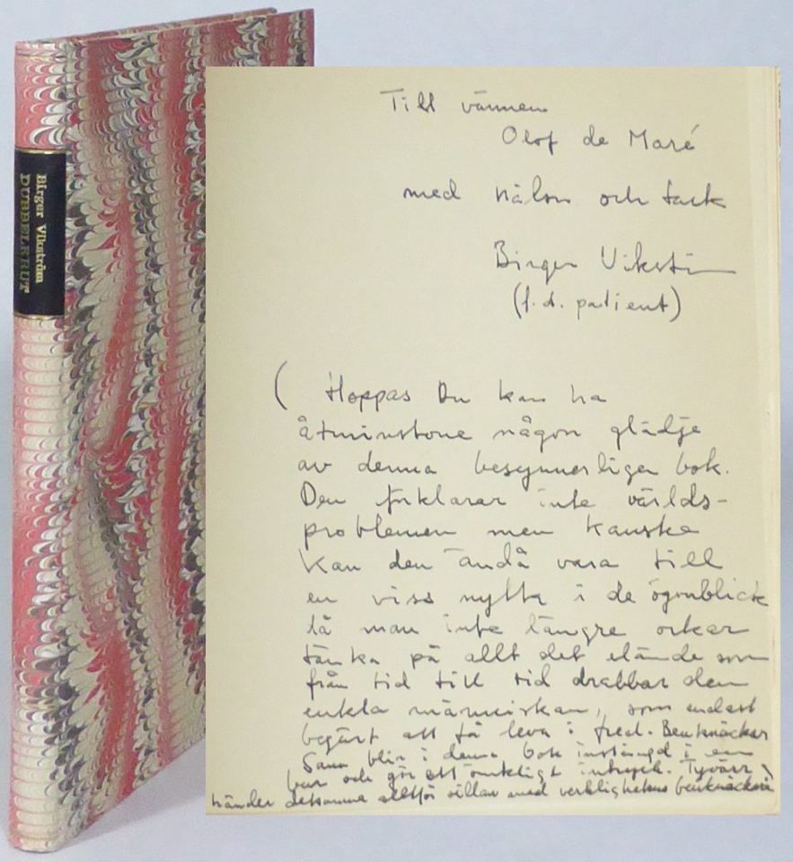 Stockholm; Förlag Birger Vikström, 1956. Originalupplaga. 20x17 cm. 93, (2, 1 blank) s. Senare marmorerat pappband (Arne Nilsson) i rött och brunt, ryggetikett i svart skinn. Omslag samt ryggremsa medbundna. Mycket fint ex. En uppsluppen rövarhistoria som i författarens förord beskrivs som en barnbok för vuxna. Dedikation: ""Till vännen Olof de Maré med hälsn. och tack / Birger Vikström (f. d. patient) / Hoppas Du kan ha åtminstone någon glädje av denna besynnerliga bok. Den förklarar inte världsproblemen men kanske kan den ändå vara till en viss nytta i de ögonblick då man inte längre orkar tänka på allt det elände som från tid till tid drabbar den enkla människan, som endast begärt att få leva i fred. Benknäckar-Sam blir i denna bok instängd i en bur och gör ett ömkligt intryck. Tyvärr händer detsamma alltför sällan med verklighetens benknäckare."" Mottagaren var läkare, bl. a. på Sollidens samt Österåsens sanatorium där Vikström vårdades för sin tuberkulos.