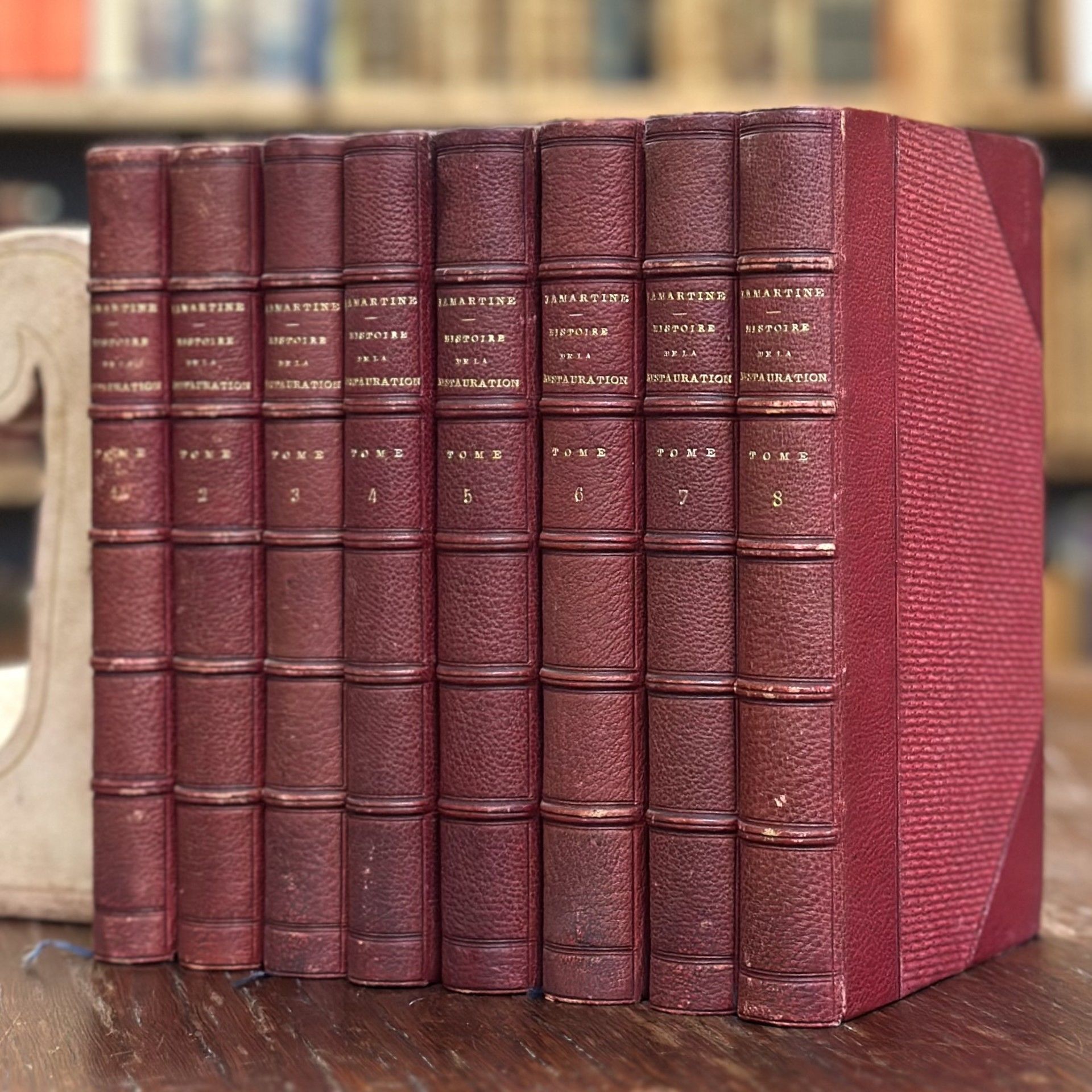 8 volumes. Furne et Cie; Pagnerre; V. Lecou, Paris 1851-52. 8°. Contemporary red half-calf bindings. Apart from some slight foxing, a most well-preserved set. * First edition of Lamartine's great work of France in the period after 1815. .