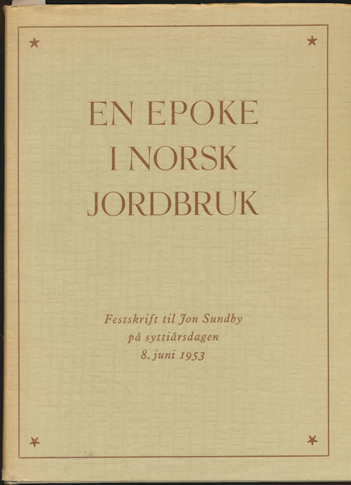En epoke i norsk jordbruk. Festskrift til Jon Sundby på syttiårsdagen