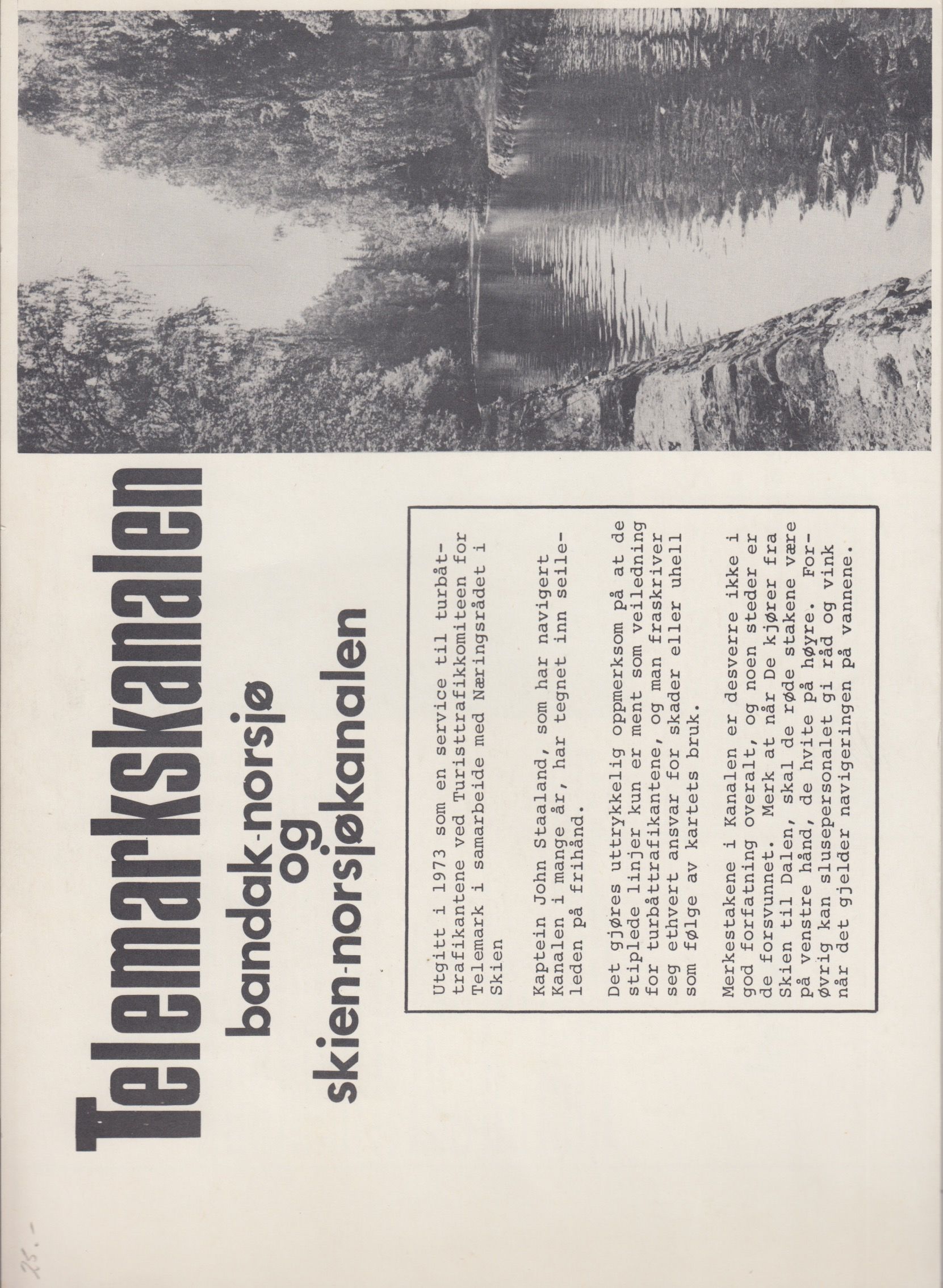 Utgitt 1973 som en service til turbåttrafikantene ved Turisttrafikkomiteen for Telemark i samarbeide med Næringsrådet i Skien.