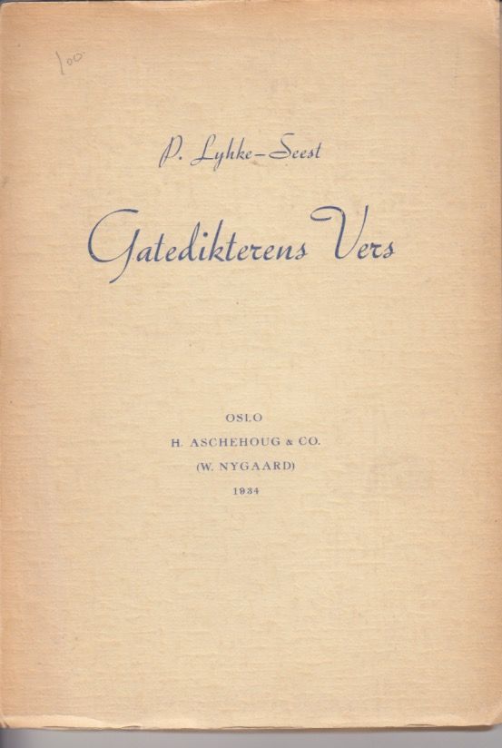 Oslo, 1934. Ryggen litt brunet, ellers pen. 8vo. 94, (2) s. Originalt omslag. Norsk.