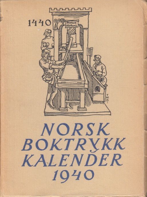 Oslo, 1940. Rift/lite hull øverst i ryggstripen, som ellers er litt smusset/skjoldet. For øvrig et fint eksemplar.. (Utgitt av Oslo typografiske forenings fagkomite) 8vo. 205, (48) s. s. Illustrert. Originalt omslag.. Norsk.