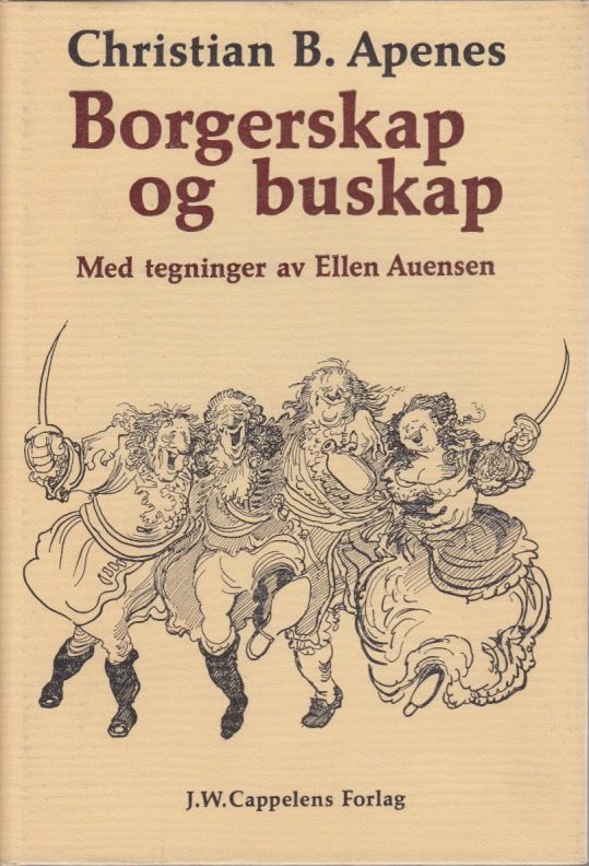 (ELLEN AUENSEN) Borgerskap og buskap. Skjemt og skrømt fra den gamle festningsby (Fredrikstad). Illustrert av Ellen Auensen.
