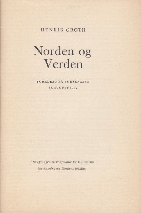 Norden og verden. Foredrag på Voksenåsen 13. august 1962.
