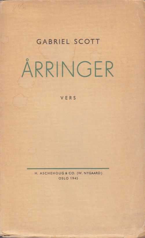 Oslo, 1945. Enkelte små skjolder på foromslag, ellers et fint eksemplar.. 8vo. 159, (1) s. s. Originalt omslag. Uoppskåret.. Norsk.