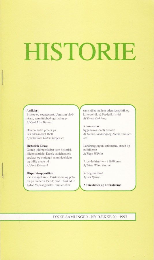 ”Vi evangeliske.” Kristendom og politik på Frederik I’s tid. Särtryck ur Historie. Jyske samlinger. Ny række 20. 1993.
