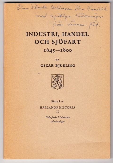Industri, handel och sjöfart 1645-1800. Särtryck ur Hallands historia II.