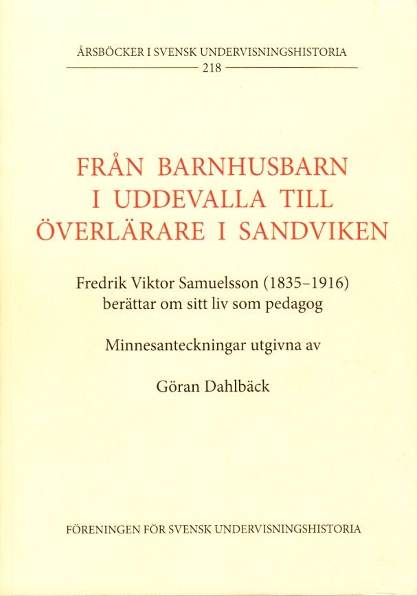 Från barnhusbarn i Uddevalla till överlärare i Sandviken. Fredrik Viktor Samuelsson (1835–1916) berättar om stt liv som pedagog. Minnesanteckningar utgivna av Göran Dahlbäck.