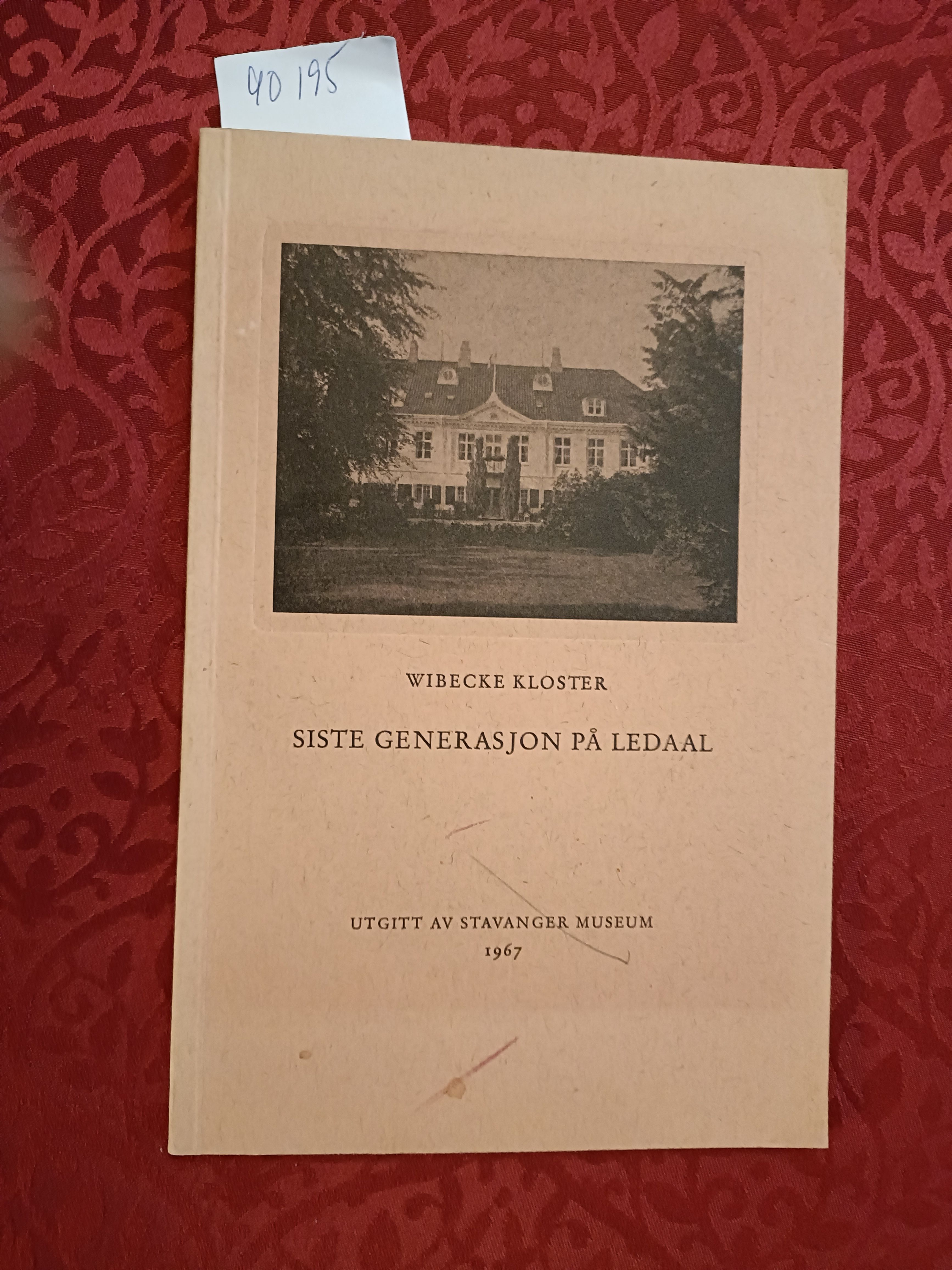 Kloster, Wibecke., 1967. 8vo 68 s., illustrert. Heftet, originalt omslag.. Utgitt av Stavanger Museum. Hilsen på side 1.