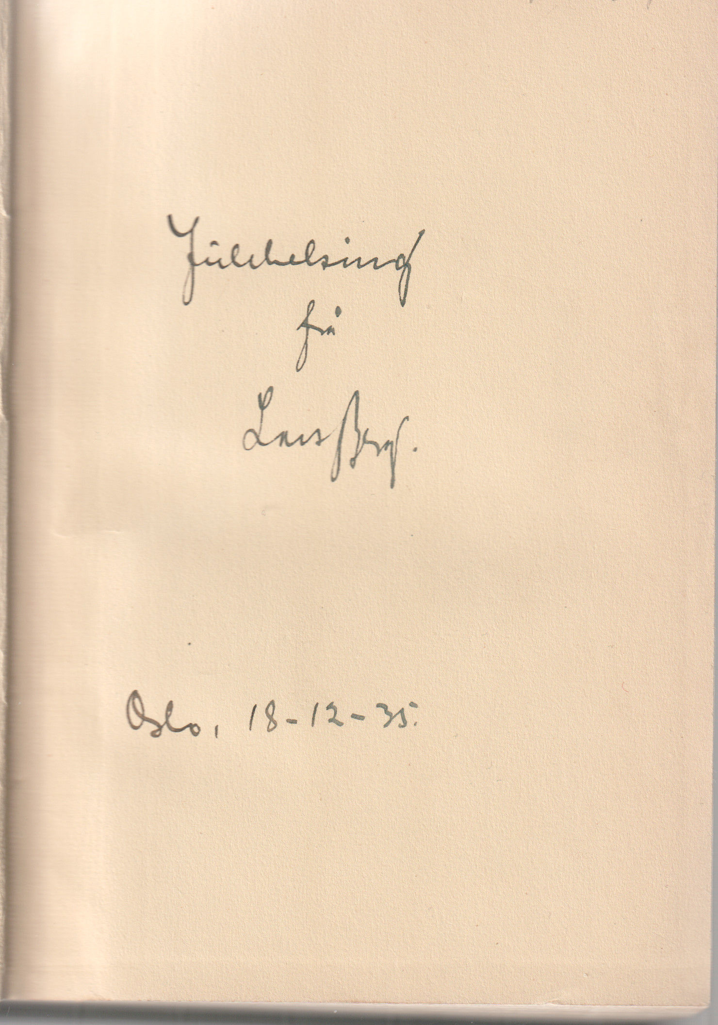 1943. Orig. omslag. Første utgave. Pen. (Eionmalige Feldausgabe für Soldaten im Bereich des Wehrmachtbefehlshabers in Norwegen) 114 s. Originalt omslag. Tysk. Brev fra reise med skip fra 9. juli - 27.august 1935 fra skipet, Eidsbygda, Romsdalen, fra skipet