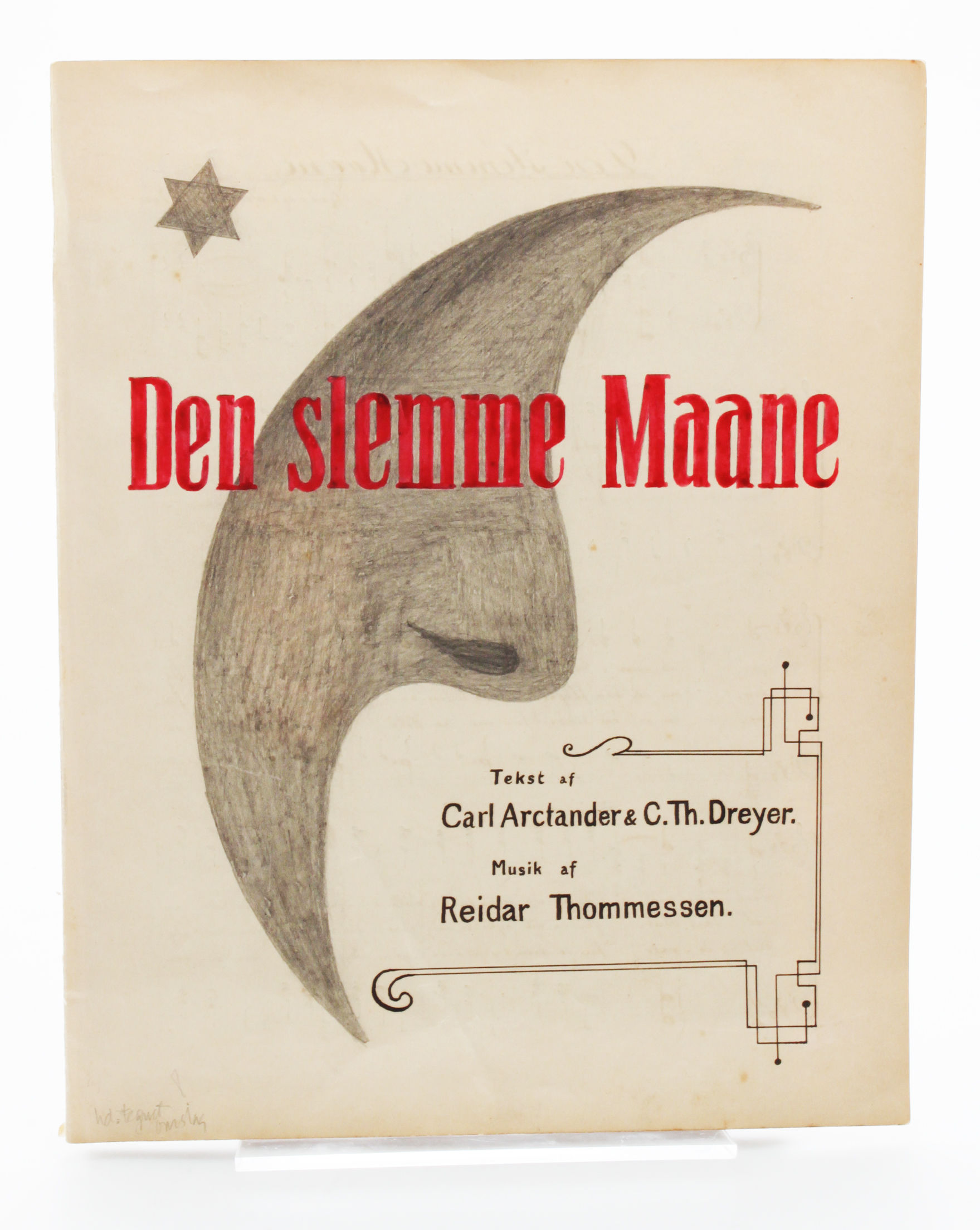 Original handmade cover drawing for the music sheet to Den slemme Maane ("The Bad Moon") a song sung as part of the Tivoli Revue (Revy) 1917.