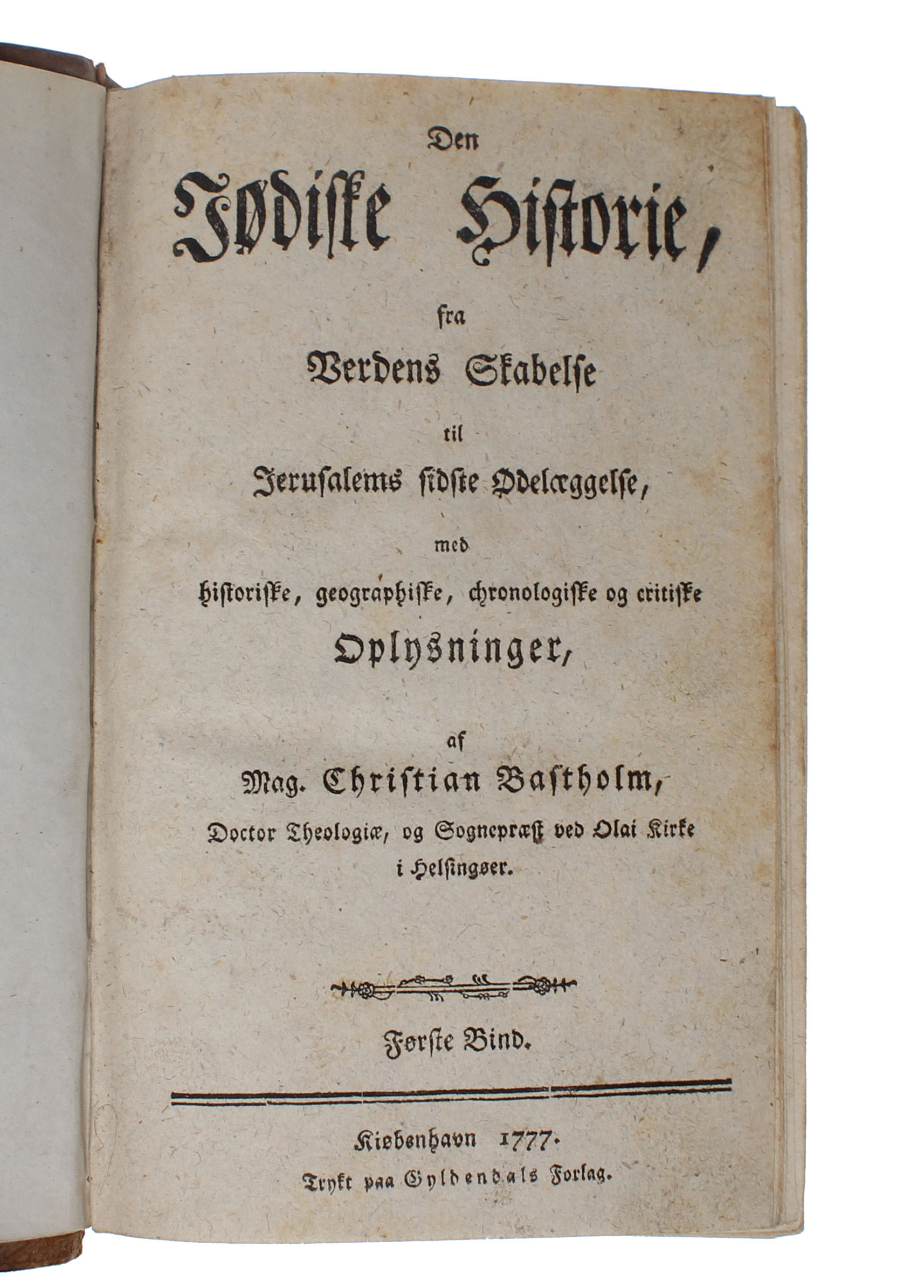 Den Jødiske Historie, fra Verdens Skabelse til Jerusalems sidste Ødelæggelse, med historiske, geographiske, chronologiske og critiske Oplysninger. 3 Bd.