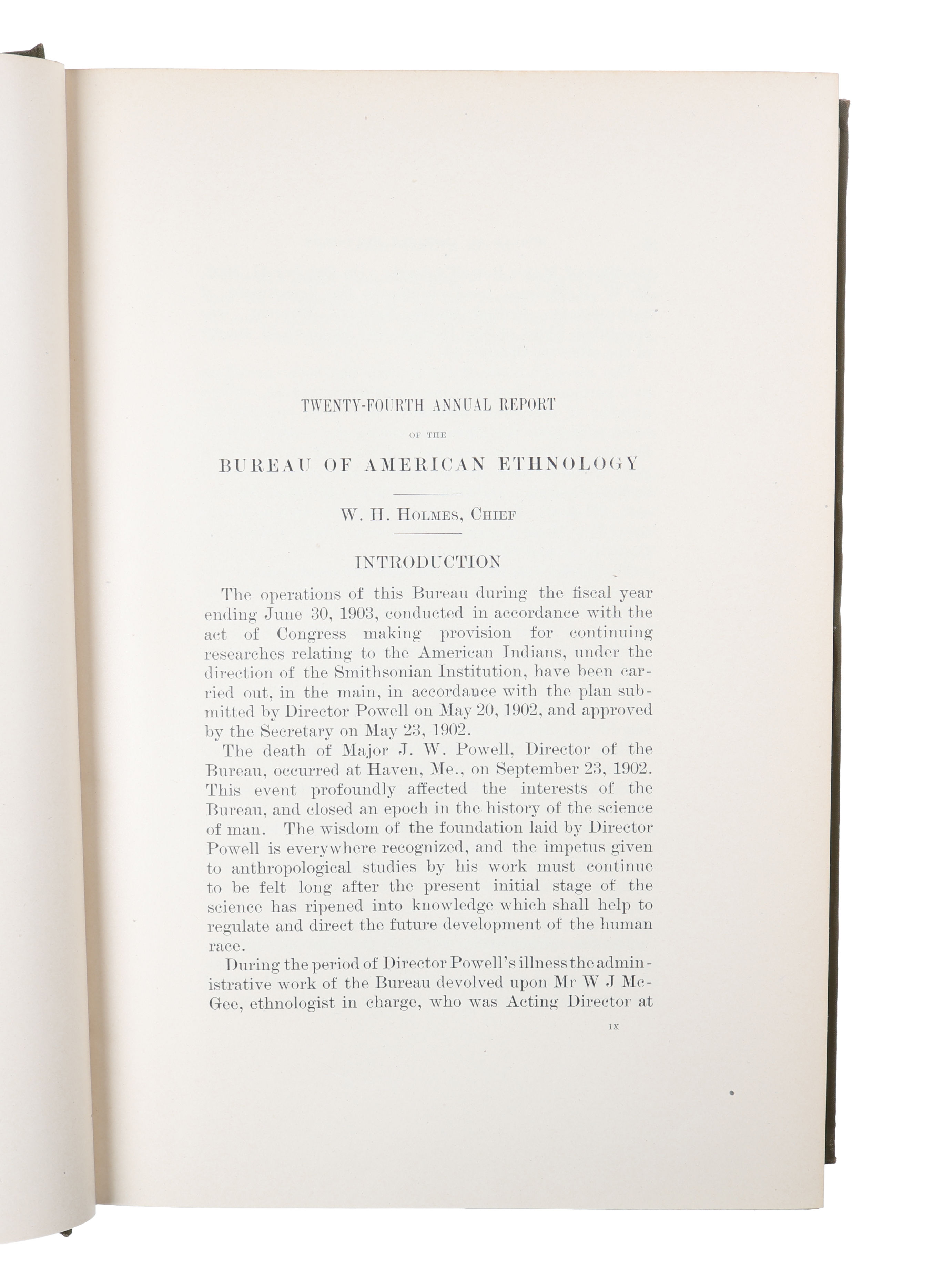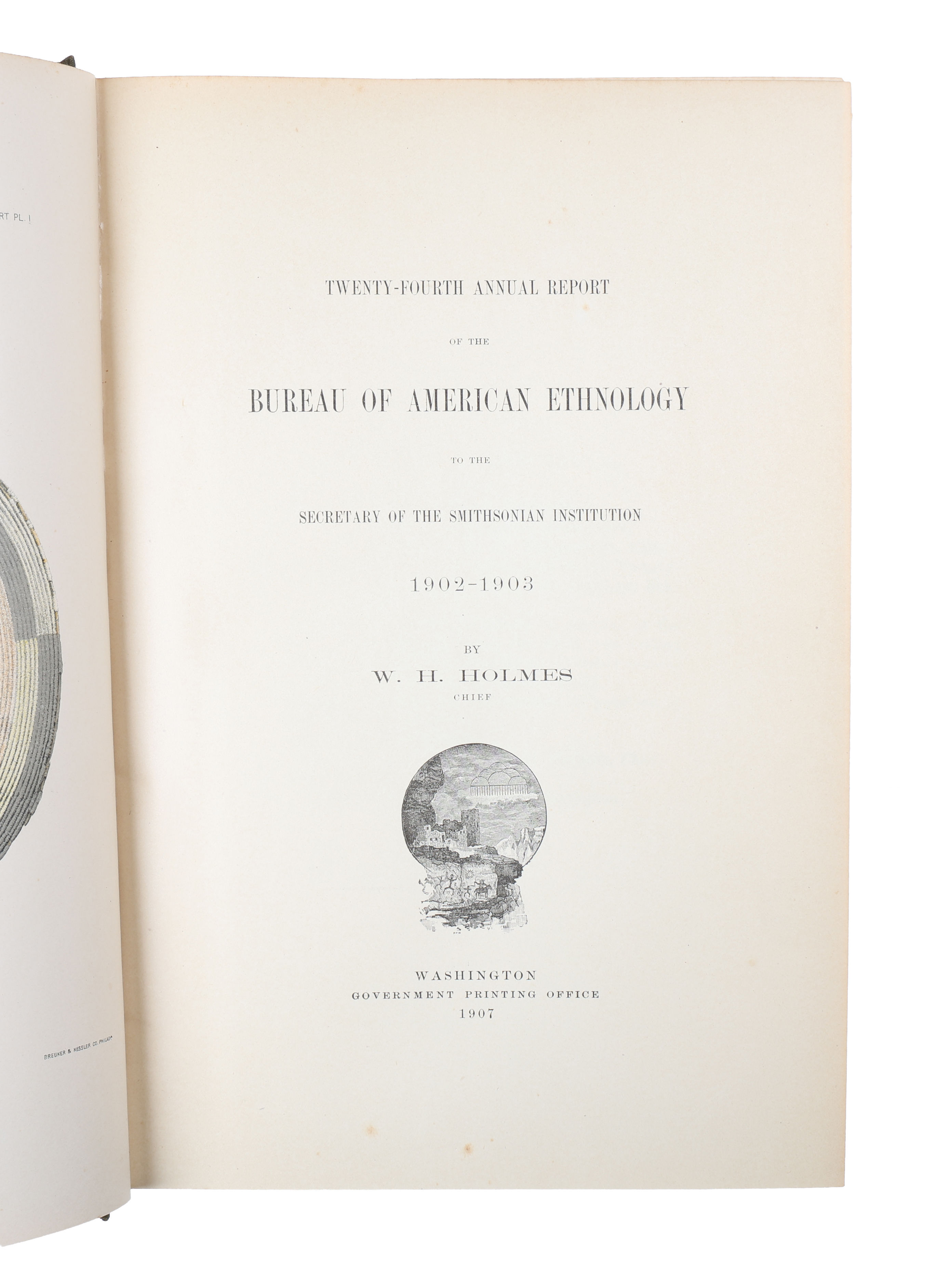 Washington, Government Printing Office, 19o7. Royal8vo. Orig. full cloth, gilt. XL,846 pp., 21 plates, 1112 textillustr. (Twenty-Fourth Annual Report of the Bureau of American Ethnology...Smithsonian Inst. 1902-19o3).