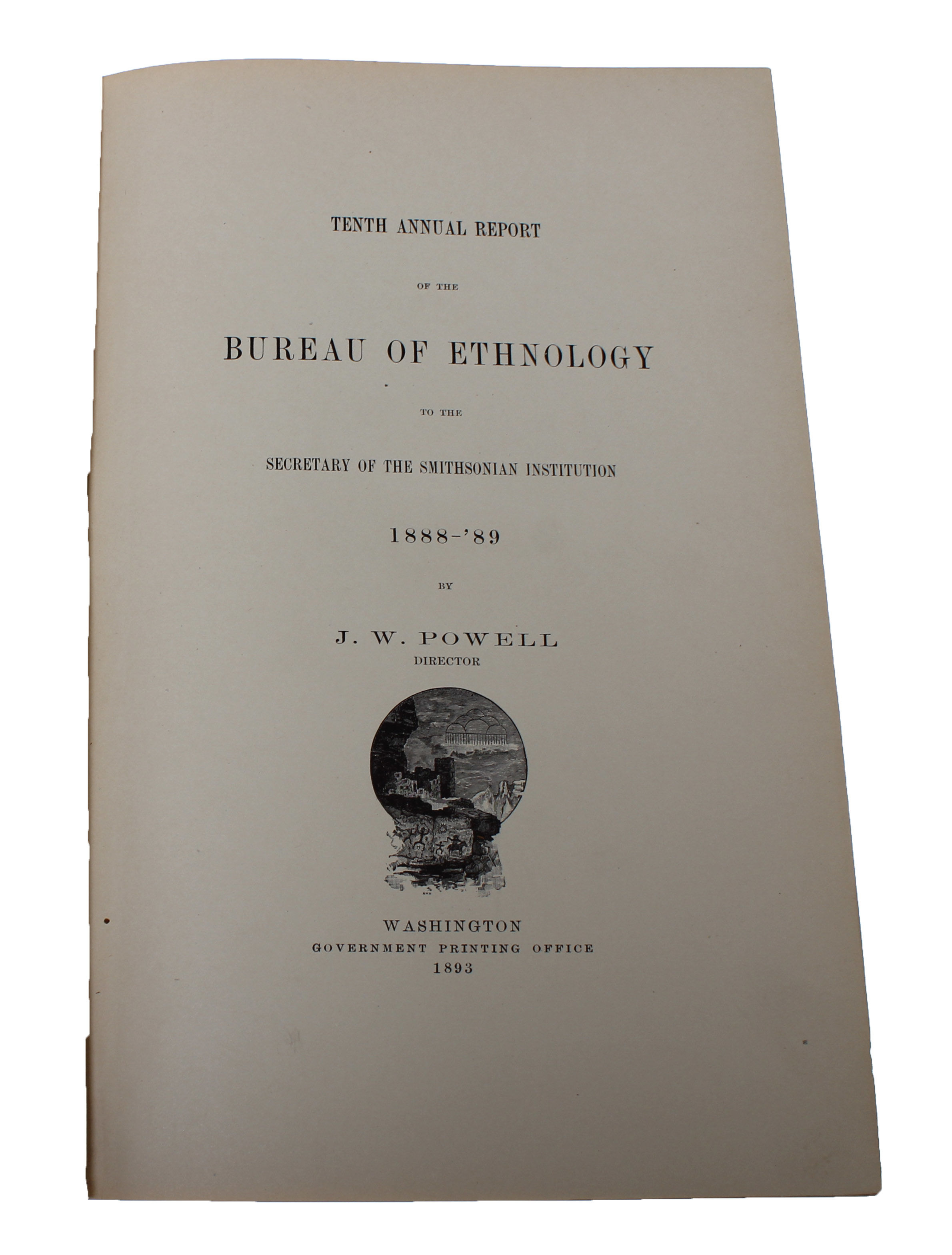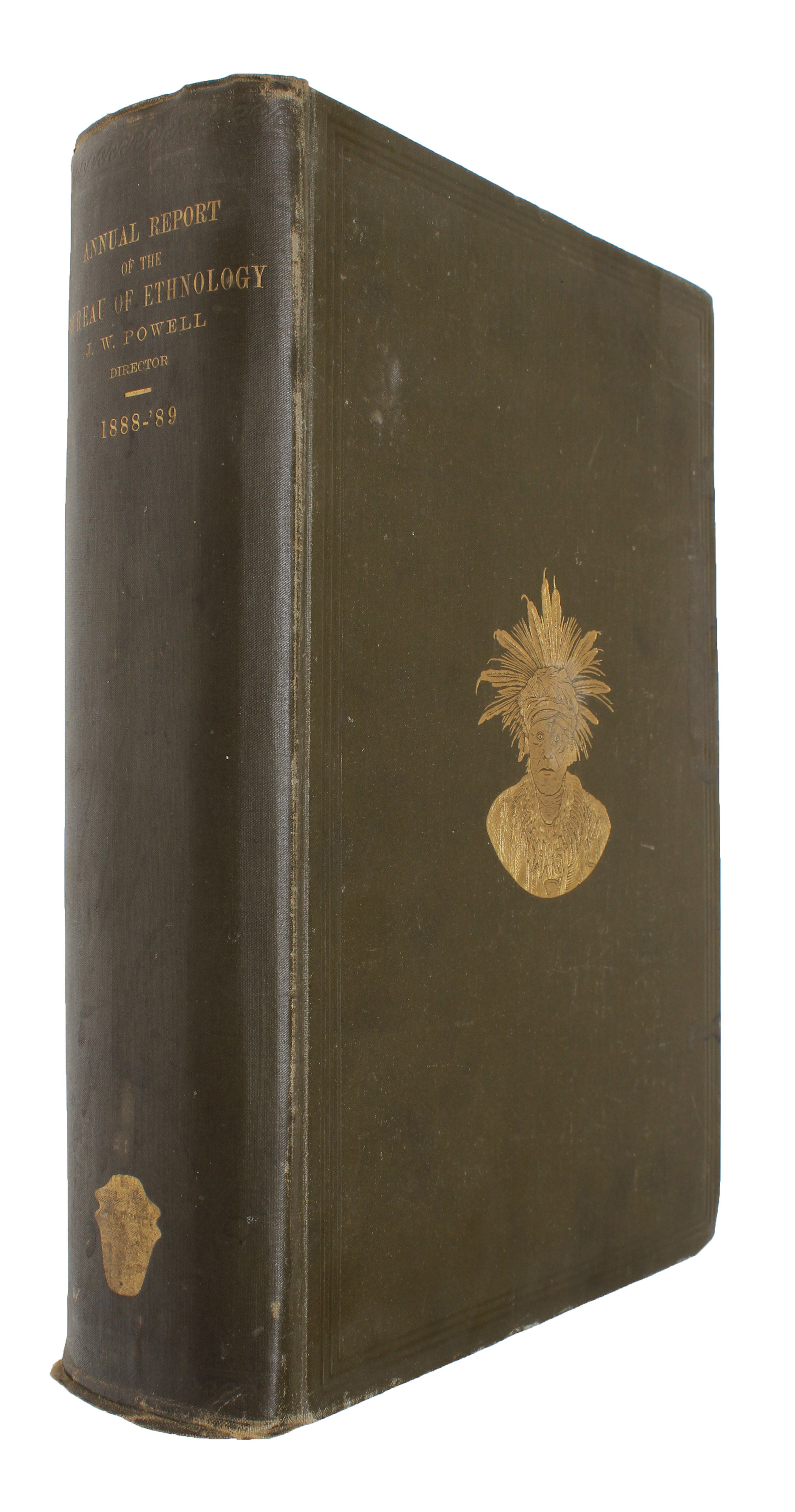 Washington, Government Printing Office, 1893. Royal8vo. Orig. full cloth., giltback. XXX,822 pp., 54 plates(partly in colour) and 1290 textillustr. (Tenth Annual Report of the Bureau of Ethnology...Smithsonian Inst. 1888-89).