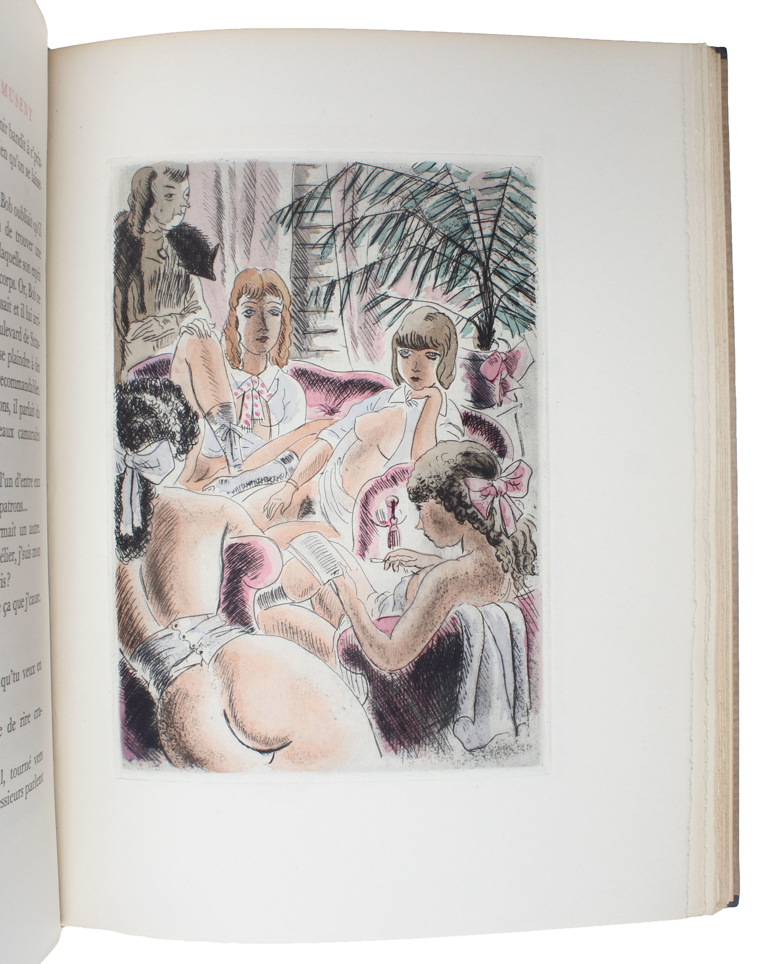 Paris, Émile Hazan, (1930). Small 4to. Bound with all orig. wrappers in a fine hmorocco (Anker Kyster 1942). No 226 of 800 "sur velin D'Arches...fabrique specialement pour cette edition", a total of 873 copies. With 6 fine etchings in colour by Dignimont.