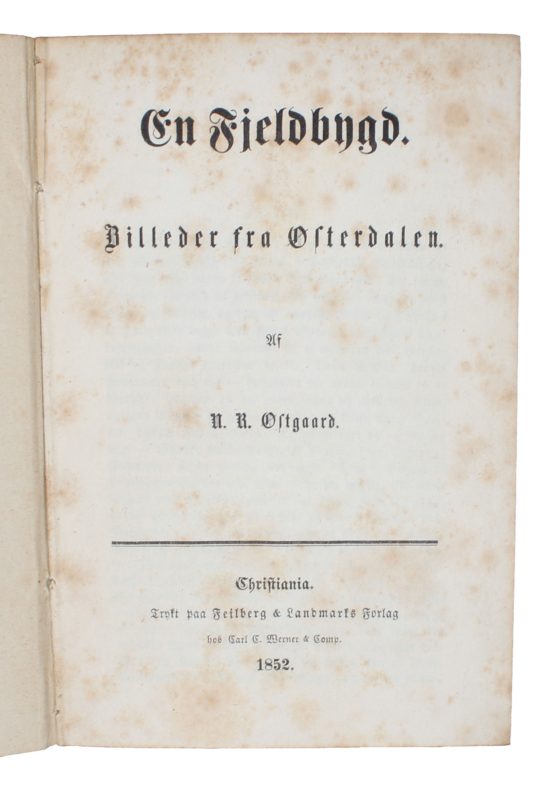 Christiania, feilberg & Landmark, 1852. Lille 8vo. Samt. papbd. med mønstret overtrækspapir.Lidt småskrammer ved forreste fals. XV,293,(1) pp. Lidt spredte brunpletter.