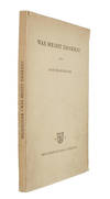 First edition of one of the most important and influential works of the later Heidegger, which presents us with his unravelling of science, technology, Metaphysics and thinking (Denken), "What is Called Thinking?"The work contains the lectures given on this subject in the Winter of 1951-52 and the Summer of 1952.Heidegger here poses the question of what it is, that which is called thinking. A further question asked is, weather there is a "thinking", which has its purpose in itself and an aim that is not without itself, i.e. a thinking, which is self-sufficient and fulfilled through itself. We are thus confronted with two ways of thinking; one, which allows us to see the thing or nature in itself; the other, which challenges nature and thereby makes it appear to us in a certain way, which we can deduct and calculate our way to, -in this way nature remains a system of information, within which we will never experience what it might really be.