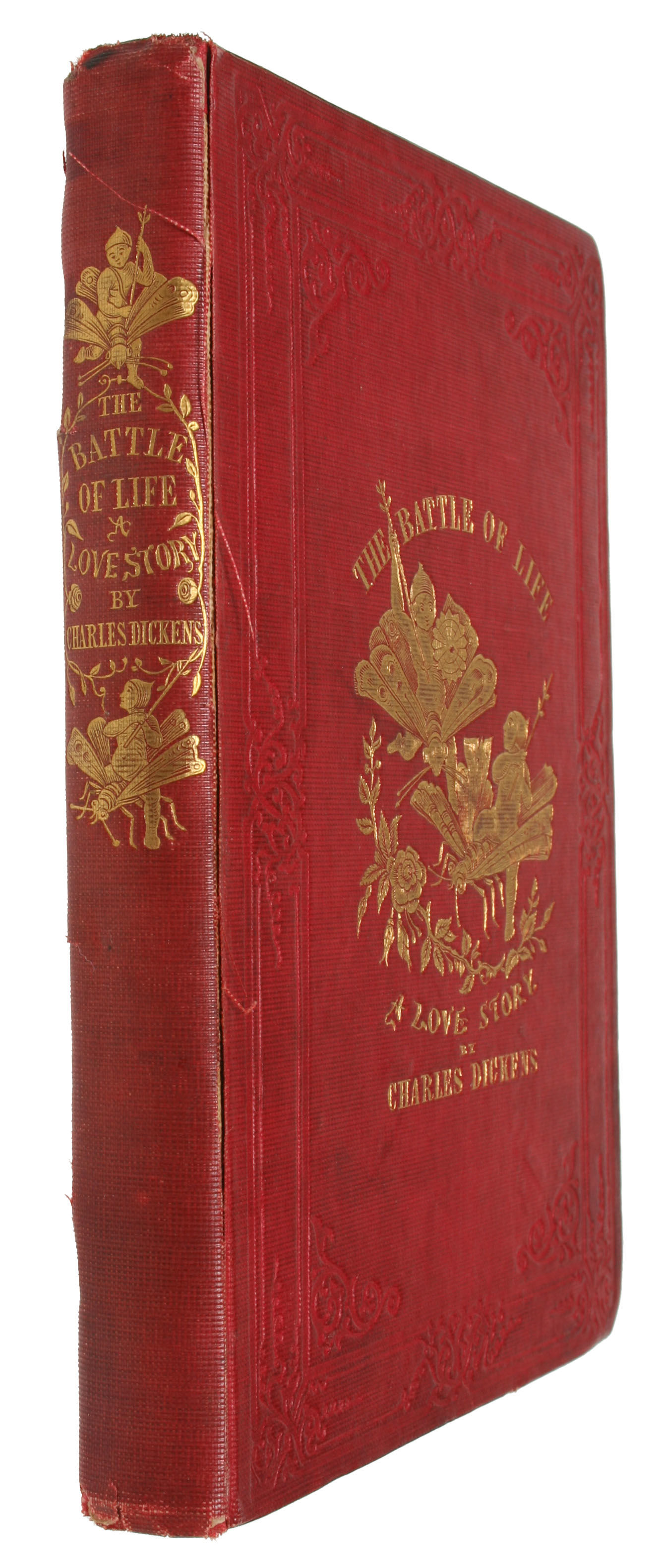 London, Bradbury & Evans, Whitefriars, 1846. Small8vo. Orig. full red cloth. Edges gilt. Blindstamped and frontcover and spine stamped in gold (each with 2 angels on wasps). Tears to cloth at hinges, no loss. Spine ends a bit worn. Engraved frontispiece and engr. title, all titles, htitles, dedic-leaf etc. (8),175,(1) pp. + 2 pp. of advertisements. Internally clean and fine.