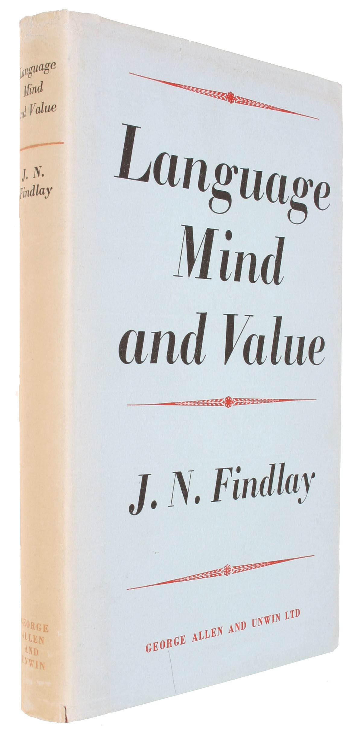 The first edition of Findlay's important collection of essays on language, mind, value, God, mathematics etc, from the library of W.O.Van Quine, with his marginal annotation.John Niemeyer Findlay (1903-1987) was an important South African philosopher, who became professor of philosophy at several universities, including Yale, Boston and King's College in London. He plays a dominant role in the Anglo-American focus on continental philosophy and invokes a shift from the analytic tradition towards the continental classics of philosophy. At philosophical institutes that were traditionally governed by the analytic tradition in the 19th century with a focus on positivism, linguistics, philosophy of language and mind etc., Findlay stands out by reviving Hegelianism, championing phenomenology and putting focus on Idealism and classical authors. Initially inspired by Wittgenstein, he turns out a n outspoken critic of this main inspiration of analytic philosophy and comes to severely criticize him and his followers. "Philosophical themes as diverse as Language, Mathematics, Value, Mind and God are among the topics discussed in this book. Some of the papers which have appeared previously in the form of articles have had a considerable influence, particularly those on Time, on Cambridge Philosophy, on Goedelian Sentences, on Morality by Convention and on the Non-existence of God. In general they represent a gradual move from a position where the influence of Wittgenstein is paramount, to a position where there is considerable criticism of linguistic philosophy and a growing interest in the approaches of Hegel and the phenomenologists. The collection includes papers on Hegel and on G.E. Moore which have not been previously published." (Inner front flap).An excellent association-copy from the library of one of the most important American and analytical philosophers of the 20th century. It is quite interesting to notice that Quine, who has contributed immensely to the fields of analytic philosophy and philosophical logic, has kapt this book, which advocates a thoroughly different approach to philosophy and claims that the importance of philosophy lies in another field than his, in his library. On page 158 Quine has written: "He should see W. ..(?)".