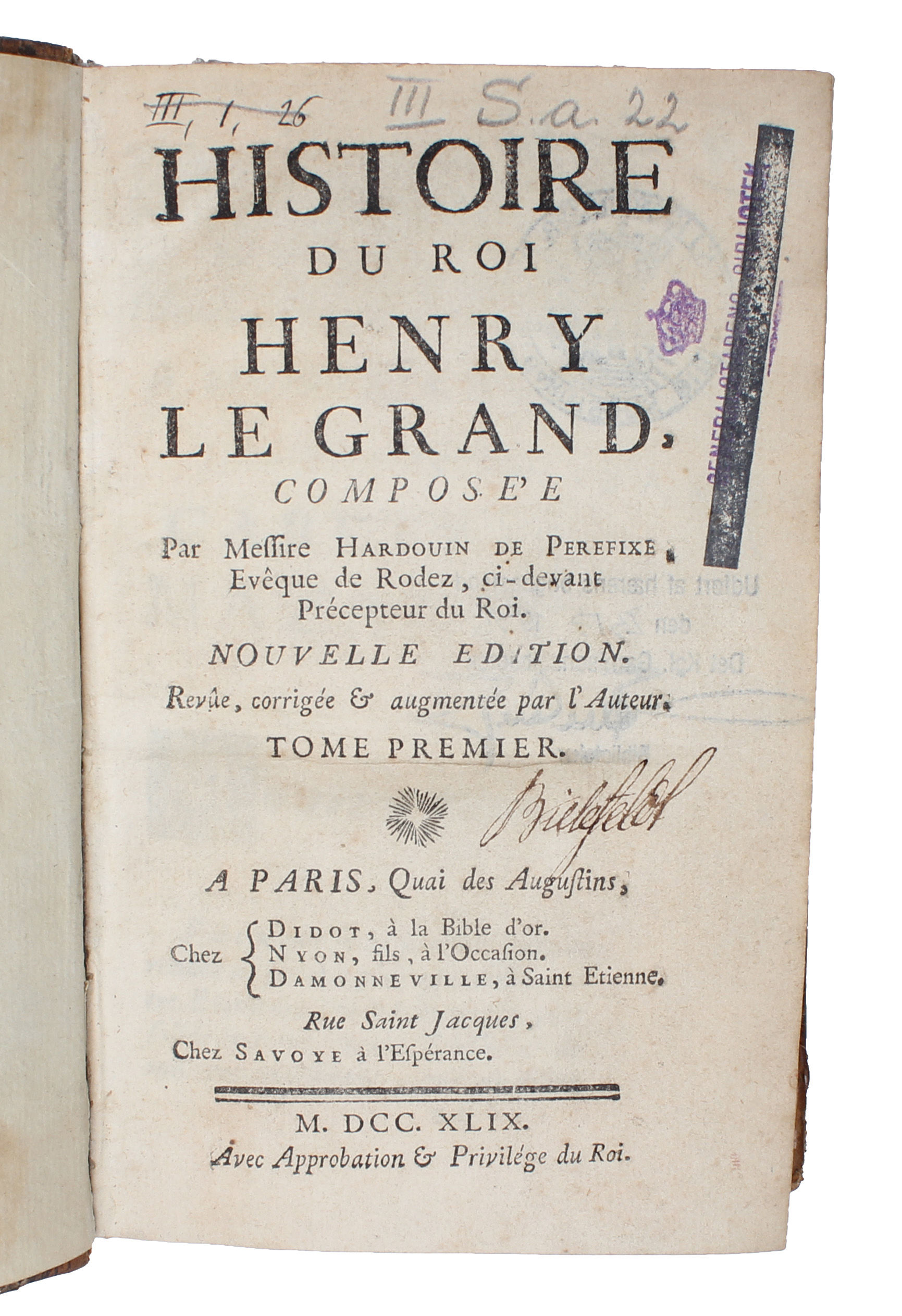 Histoire du Roi Henry le Grand.. Nouvelle Édition. Revue, corrigée & augmentee par l'Auteur. 2 vols.