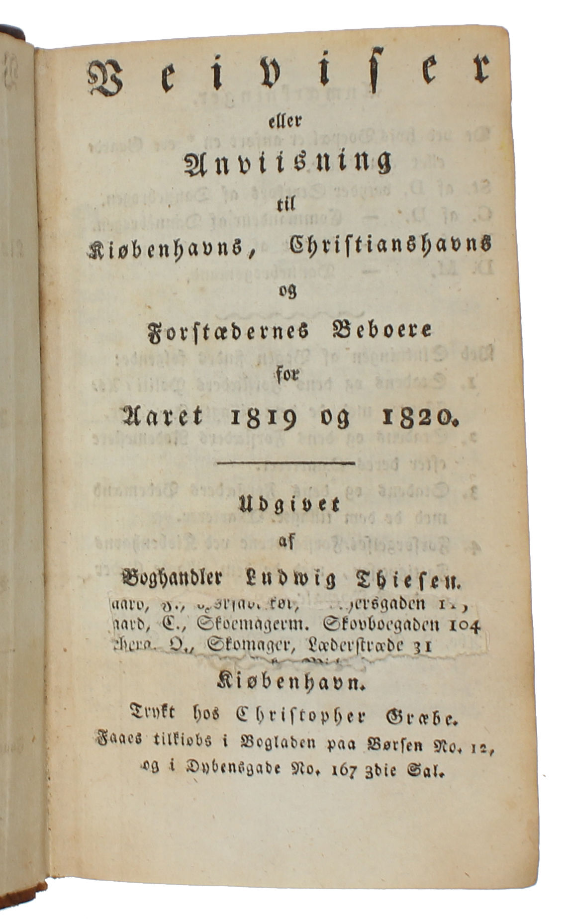 Veiviser eller Anviisning til Kiøbenhavns, Christianshavns og Forstædernes Beboere for Aaret 1819 og 1820.