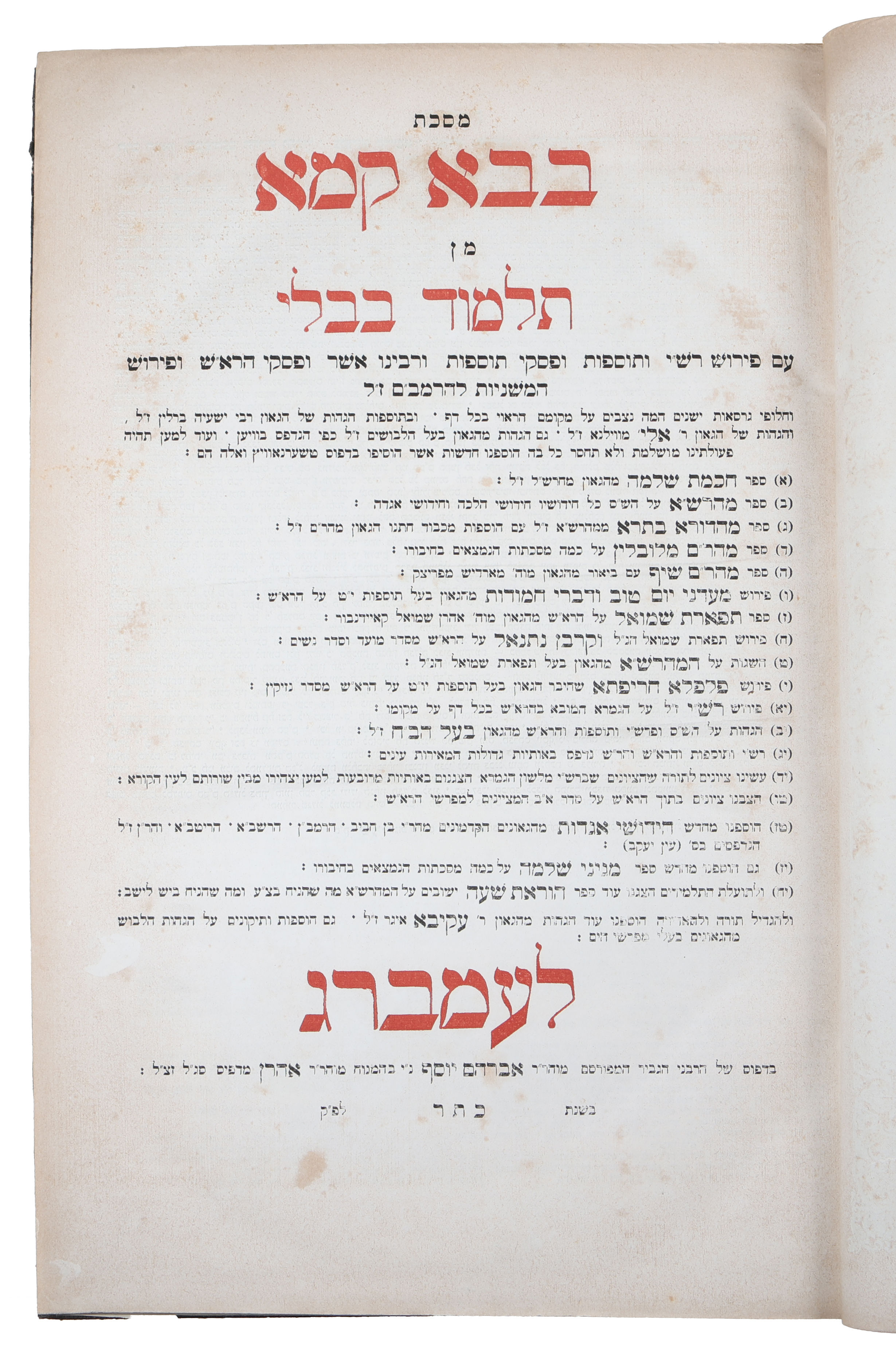 Baba kamo Talmud Bably. Tom II.