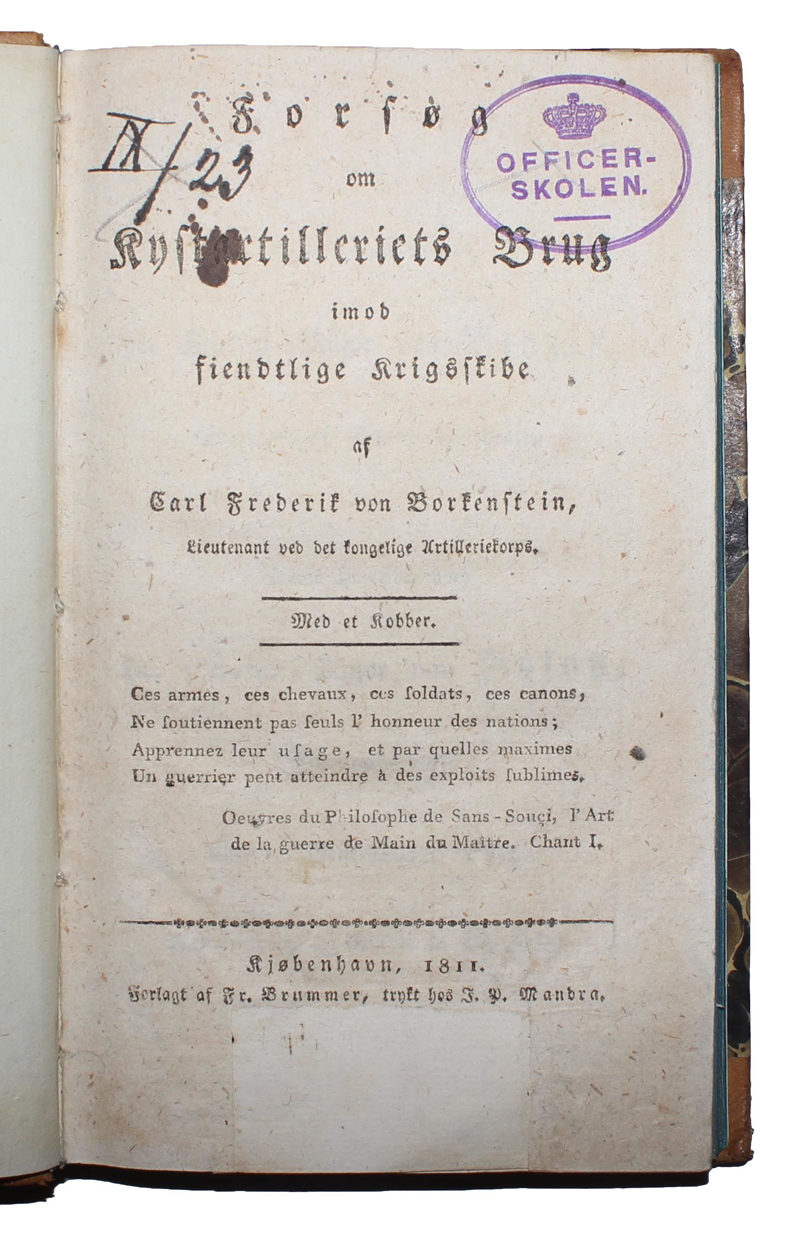 Kjøbenhavn, Fr. Brummer, 1811. Samtidigt hldrbd. med rygforgyldning og skindtitel på ryg. Lettere brugsspor. Stempel på titelblad. (4),XVI,207 pp. samt 1 kobberstukket foldetavle. Lidt spredte ubetydelige brunpletter.