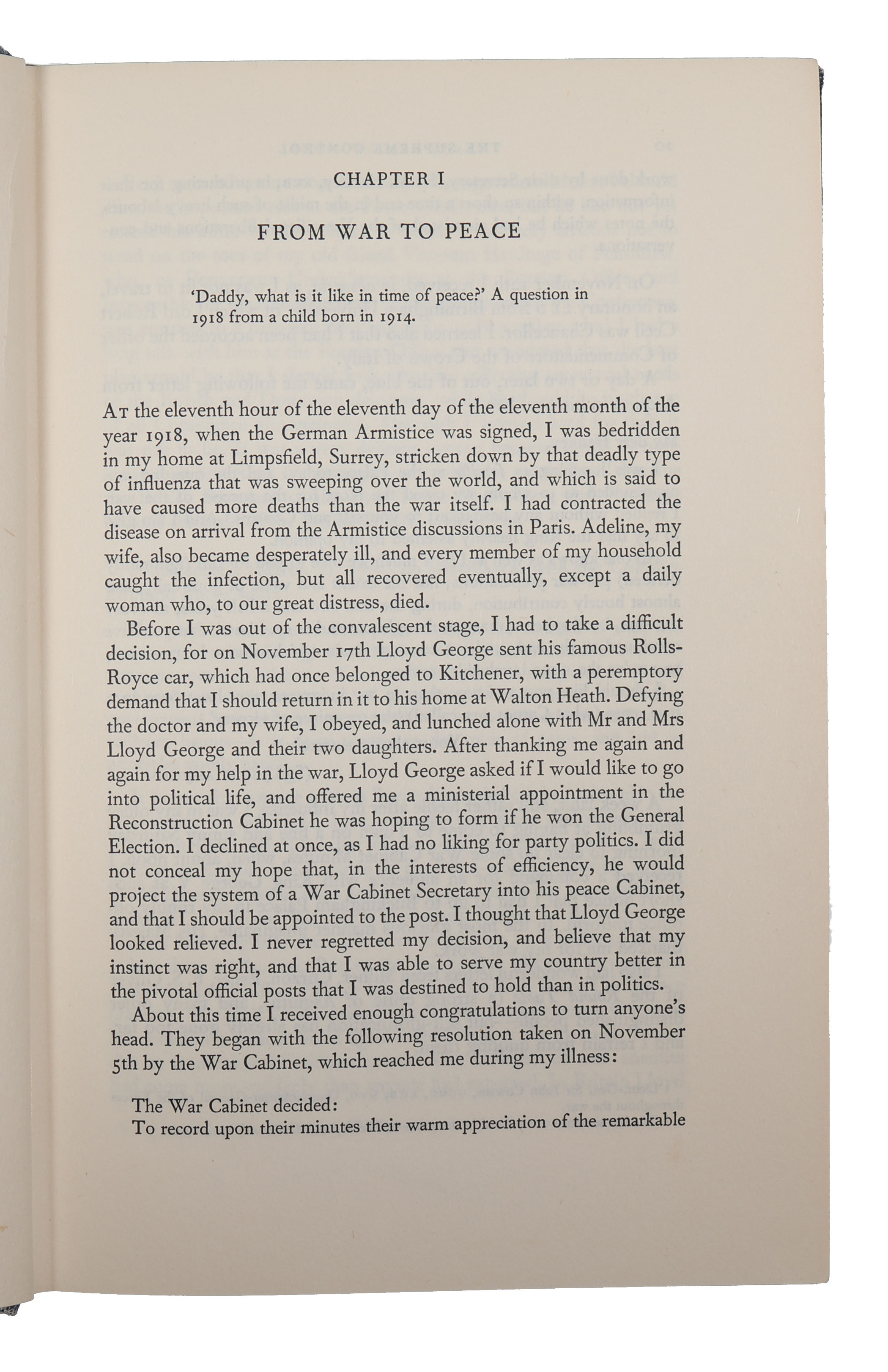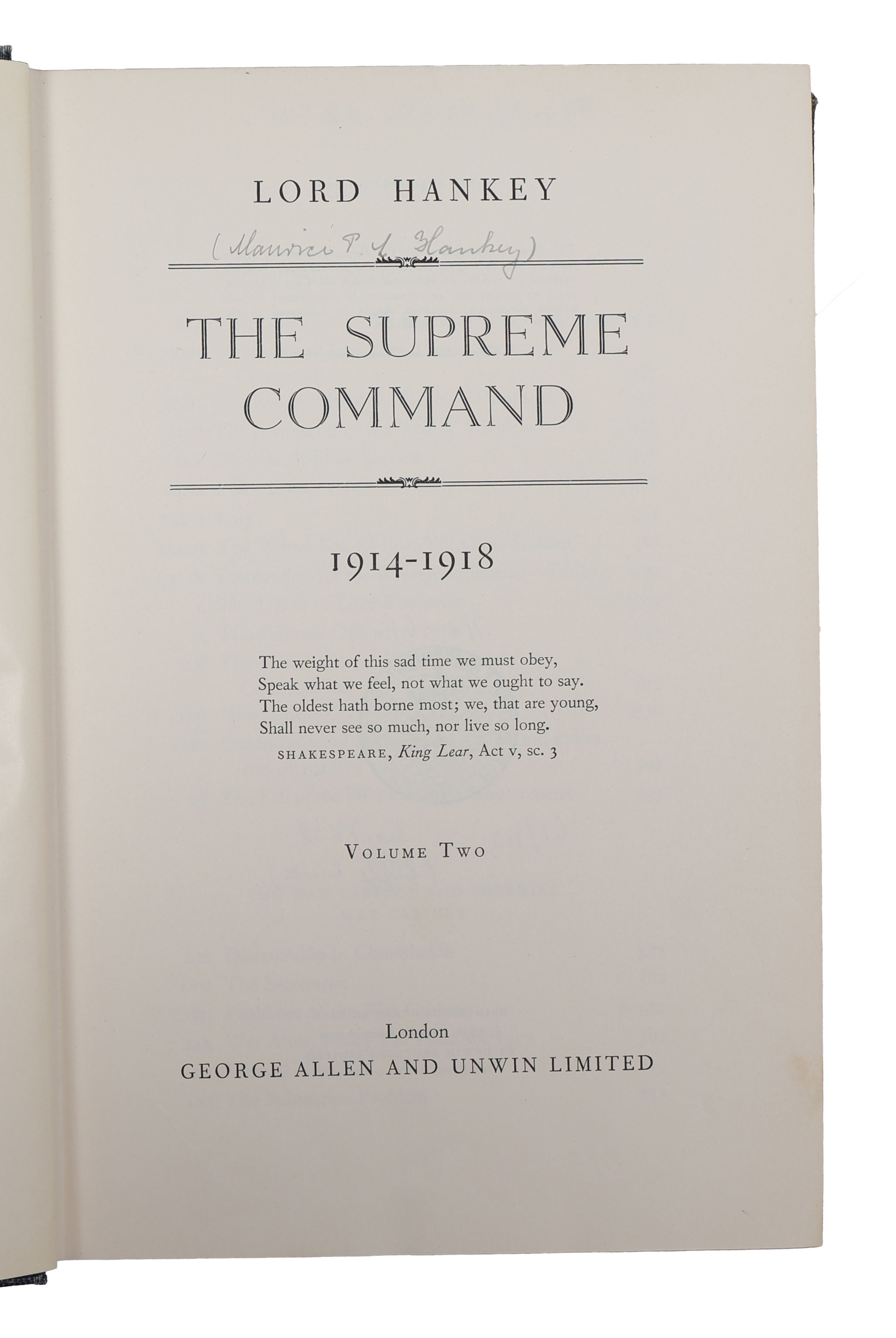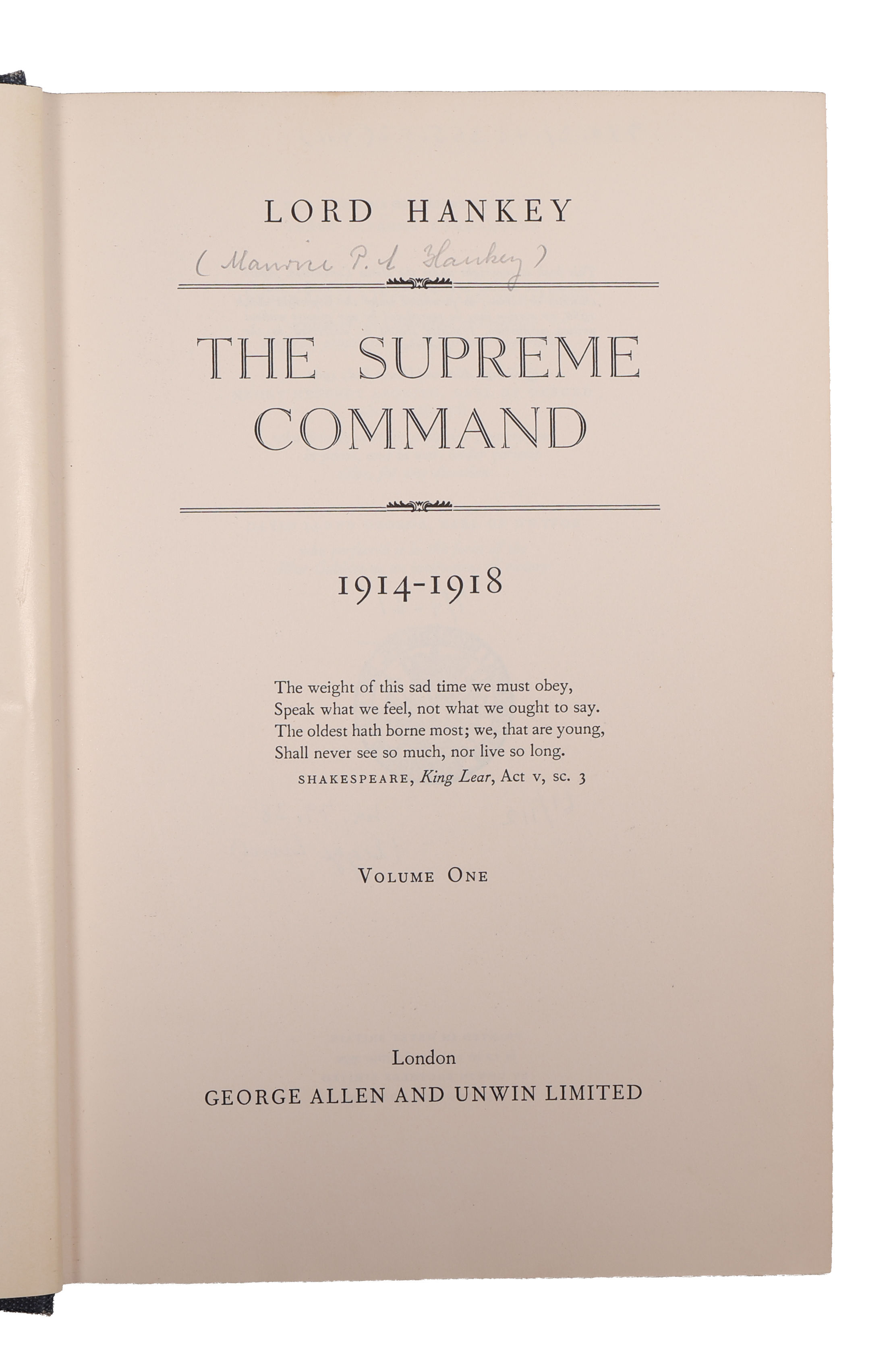 The Supreme Command 1914-1918; The Supreme Control at the Paris Peace Conference 1919 . 2 vols. + supplement.