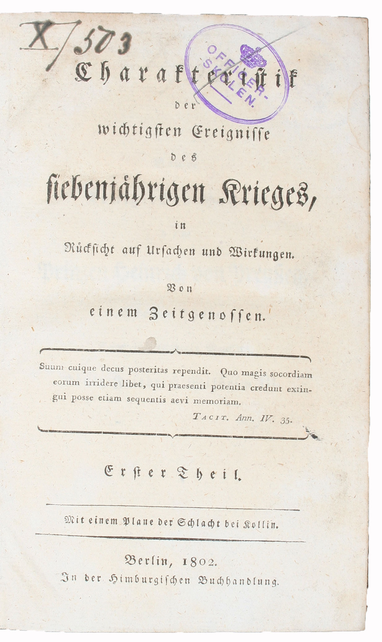 Charakteristik der wichtigsten Ereignisse des siebenjährigen Krieges, in Rücksicht auf Ursachen und Wirkungen. Von einem Zeitgenossen. 1.-2. Theil.