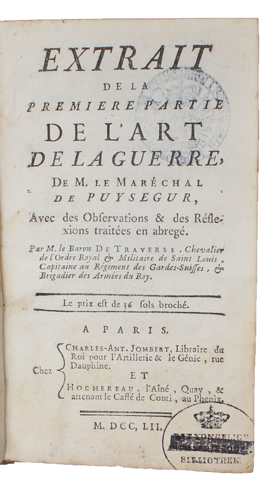 Etude de militaire pour servir D'Introduction a L'Instruction methodique de L'Art de la Guerre. 1.-2. Partie. (1. Extrait de Puysegur, avec des Observations & des Reflexions traité en abregé. - 2. Essai sur divers Principes de L'Art de laGuerre, e...
