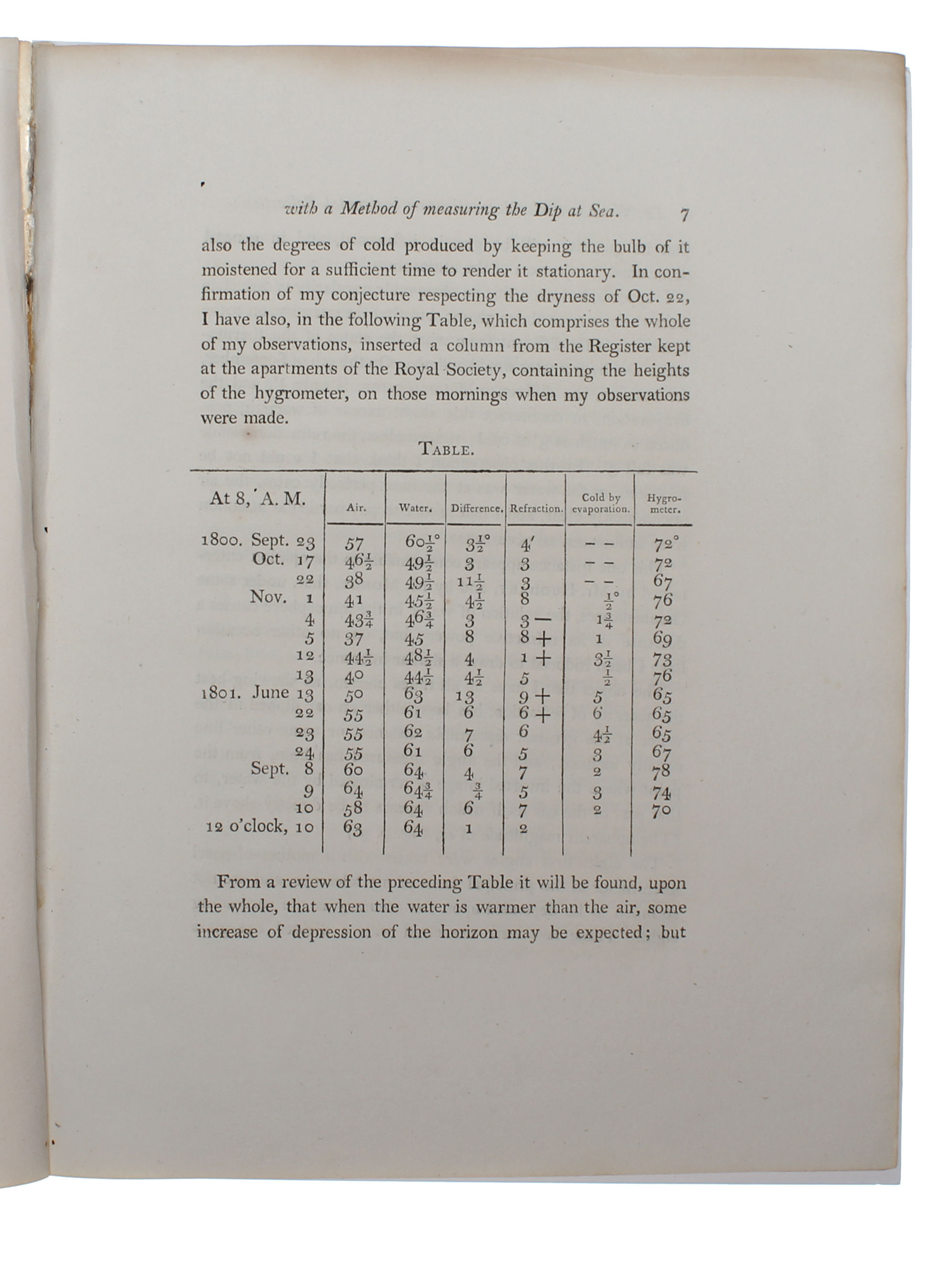 (London, Bulwer and Co., 1803). 4to. Without wrappers as extracted from "Philosophical Transactions of the Royal Society of London." Year 1803 - Part I. Pp. 1-11, one textillustr.