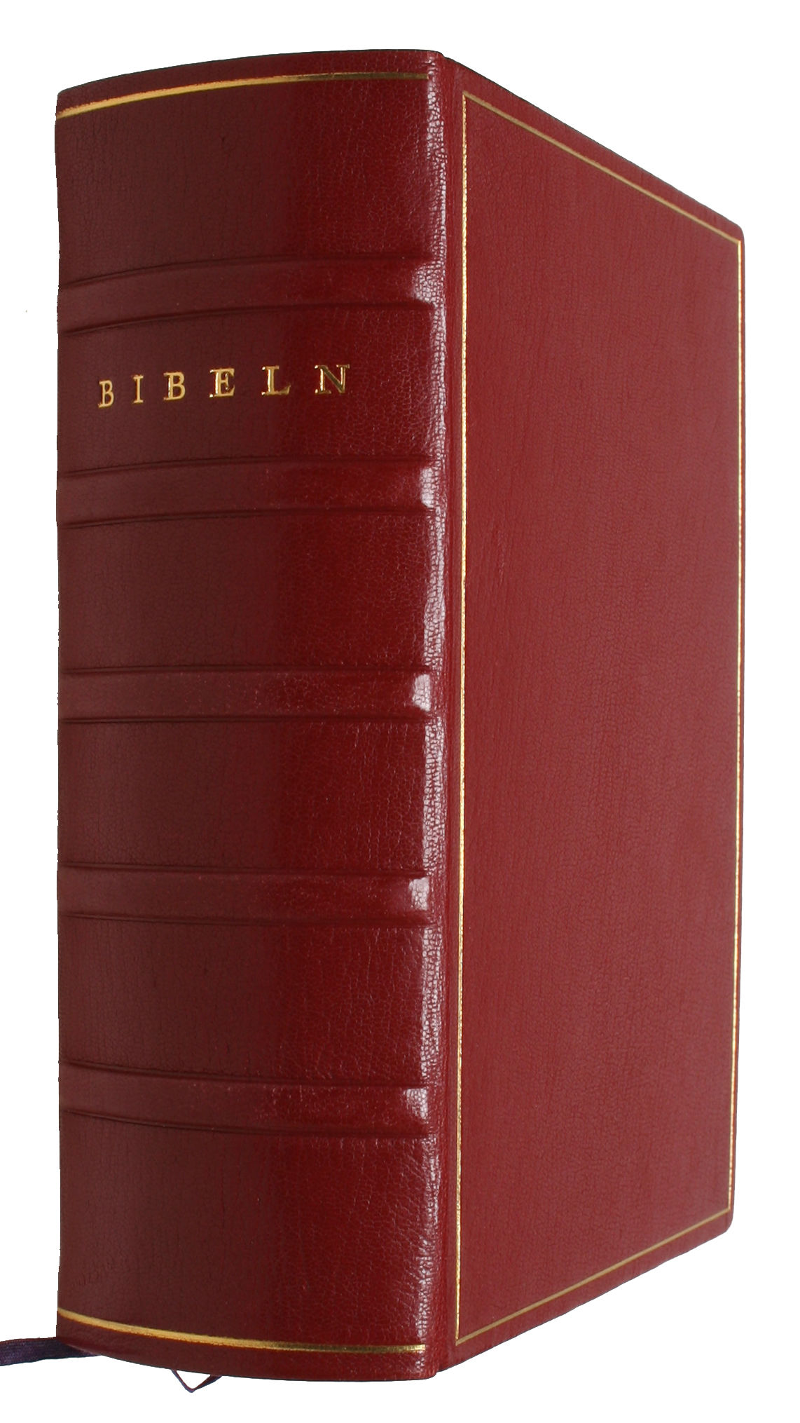 Stockholm, Svenska Kyrkans Diakonistyrelses Bokförlag, (1947). 4to. (26,5 x 20,5 cm.). Indbundet i et meget smukt privat hellæderbind af dybrød maroquin med ophøjede bind på ryg. Forgyldt rygtitel. Forgyldte stregbordurer på permer, indvendig med bred forgyldt bordure., helt guldsnit. 1282,430 pp., plancher og 4 kort. Aldeles frisk eksemplar.